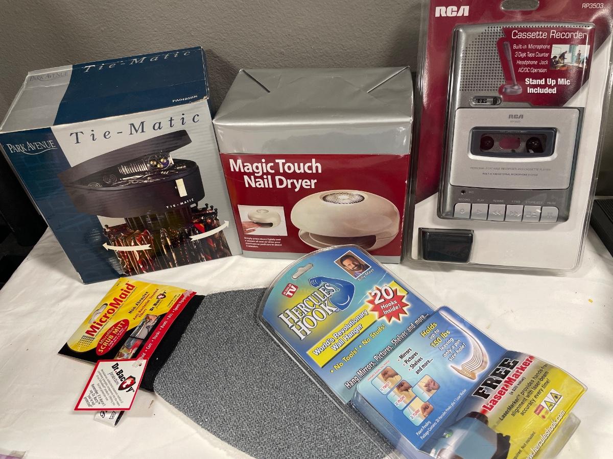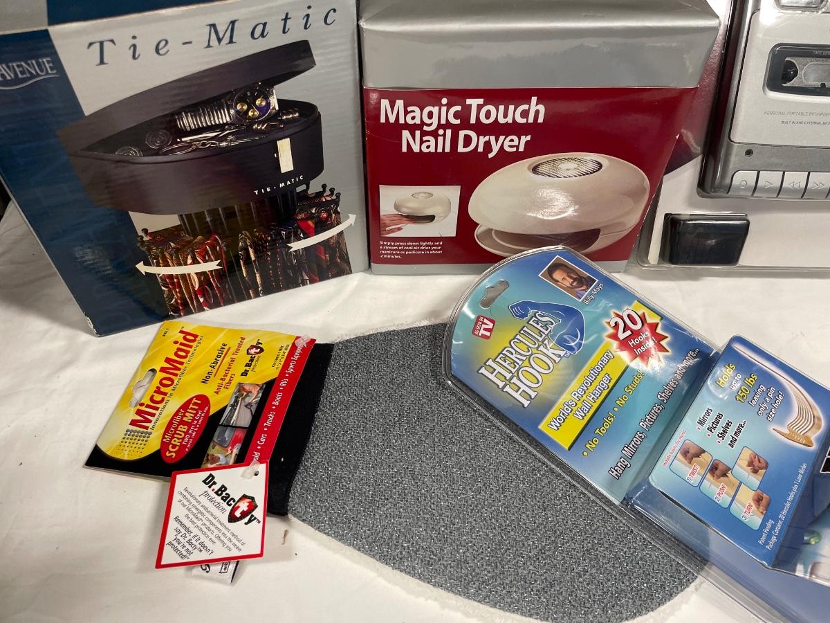 Cassette recorder, tie-matic and nail dryer