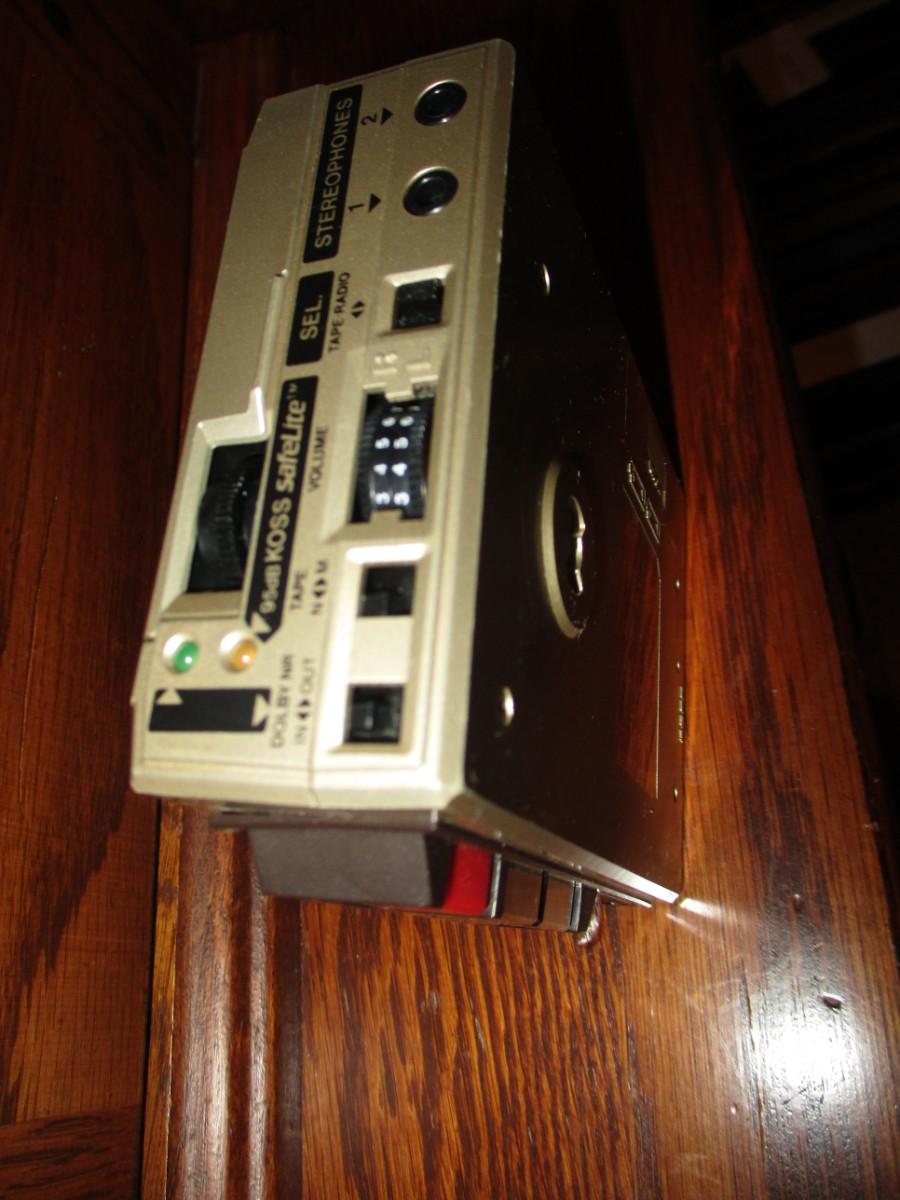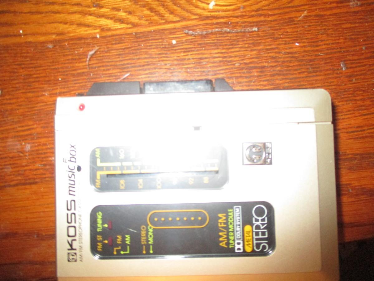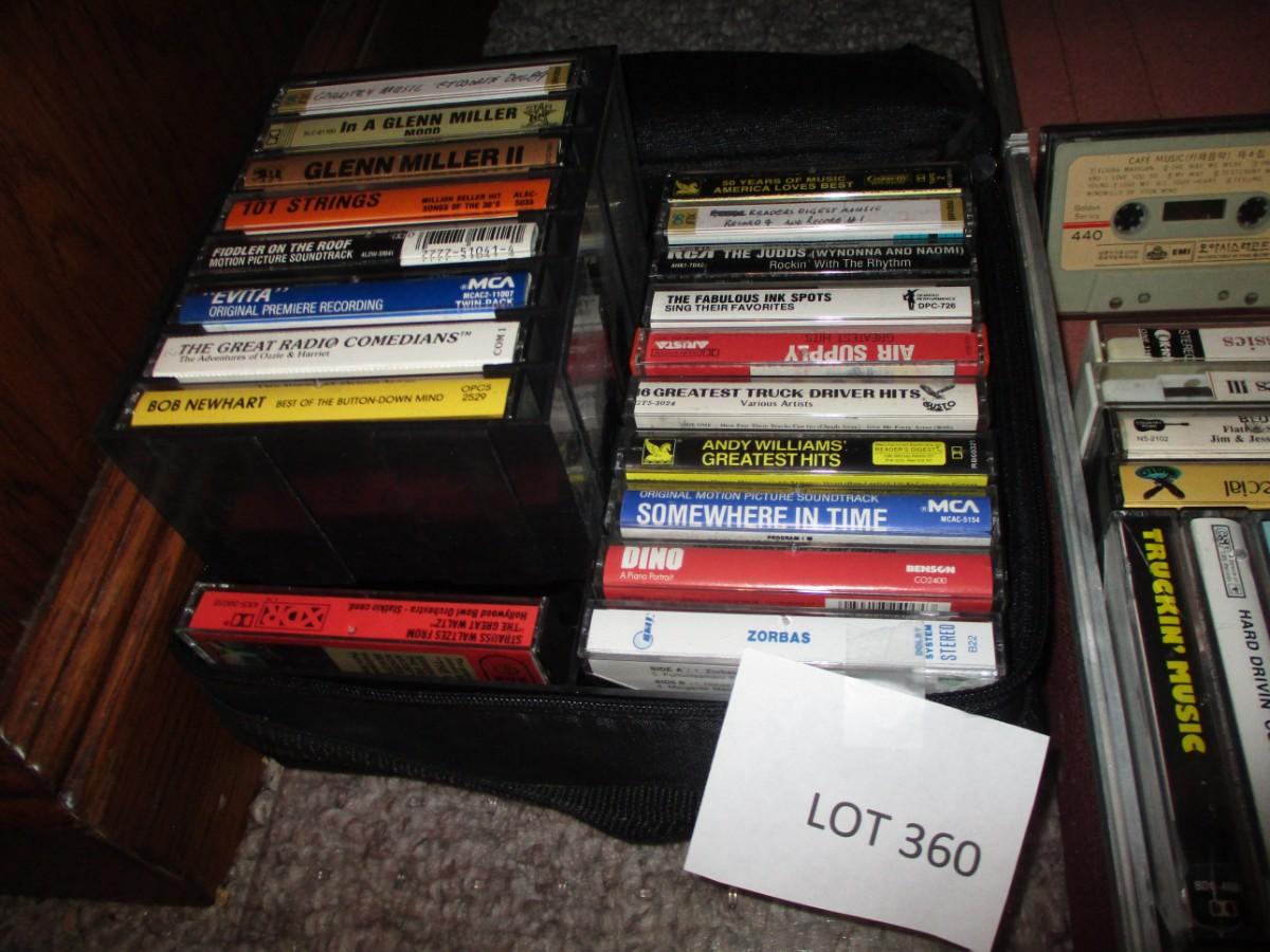 Various cassettes, handheld cassette player, cassette case holder. Can't guarantee player works.