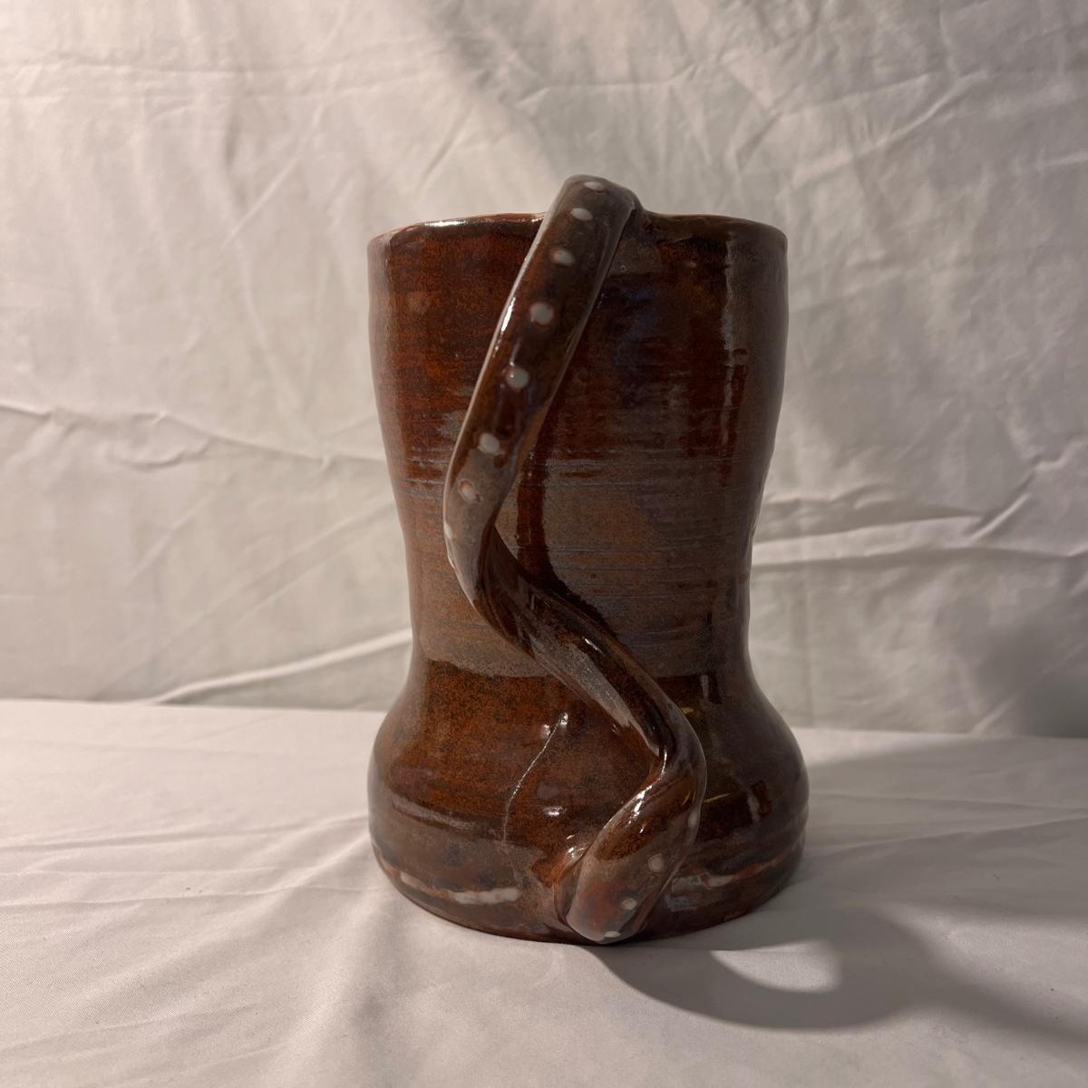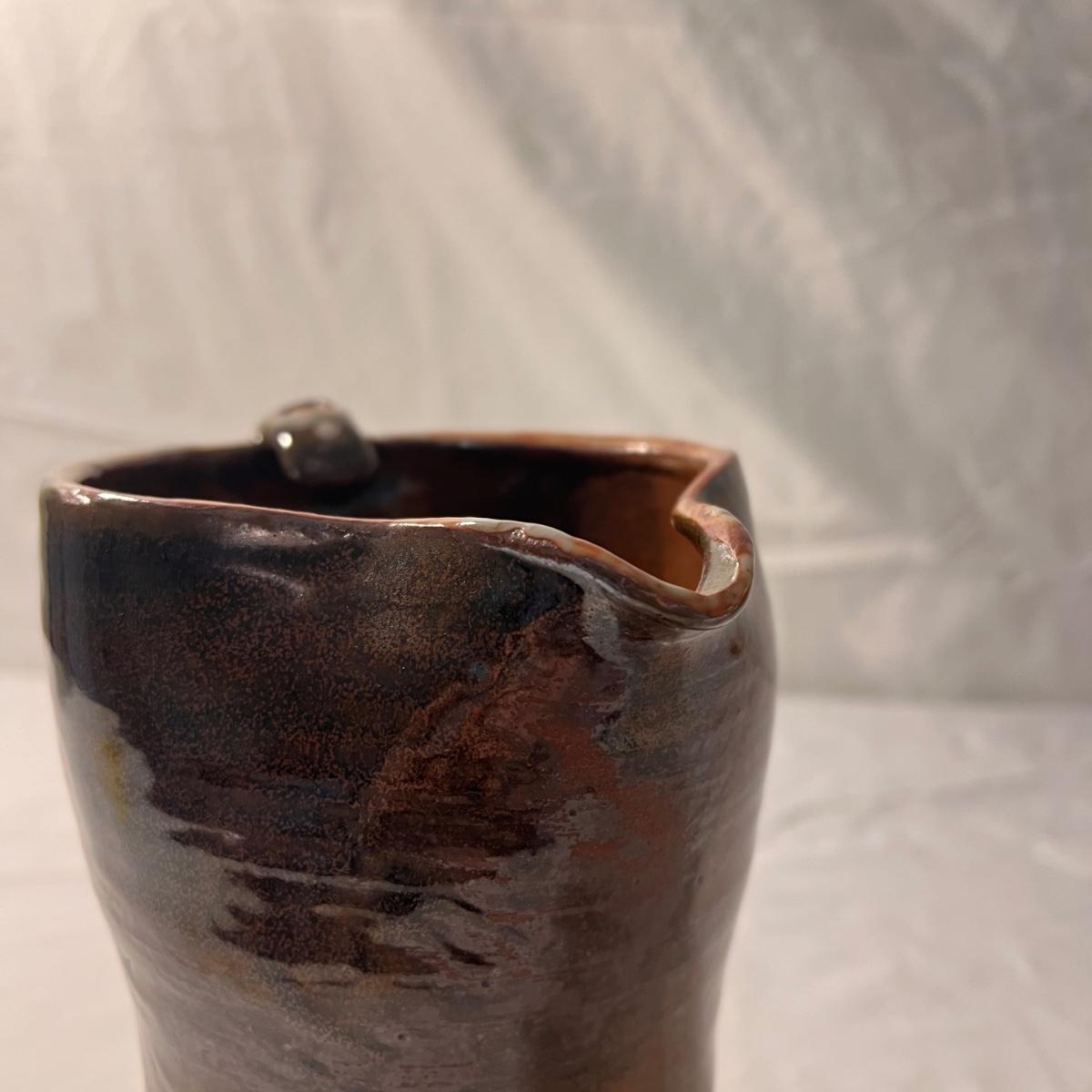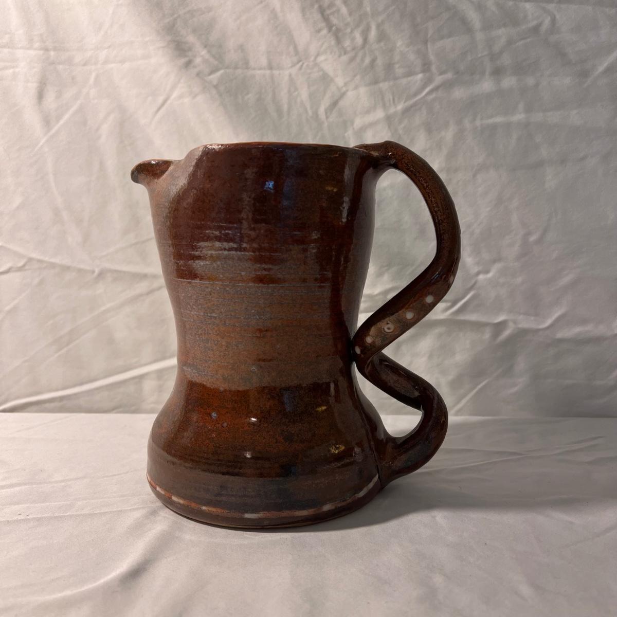 This lot includes five mugs and one pitcher. Seller states that they are crafted by Cassie Stenehjem, but we cannot verify this. Four of the mugs are stamped with "œCAS "˜06." The pitcher has one exterior crack - see picture included. The pitcher is the largest item that measures 7” x 5” x 7”H. Shipping available.