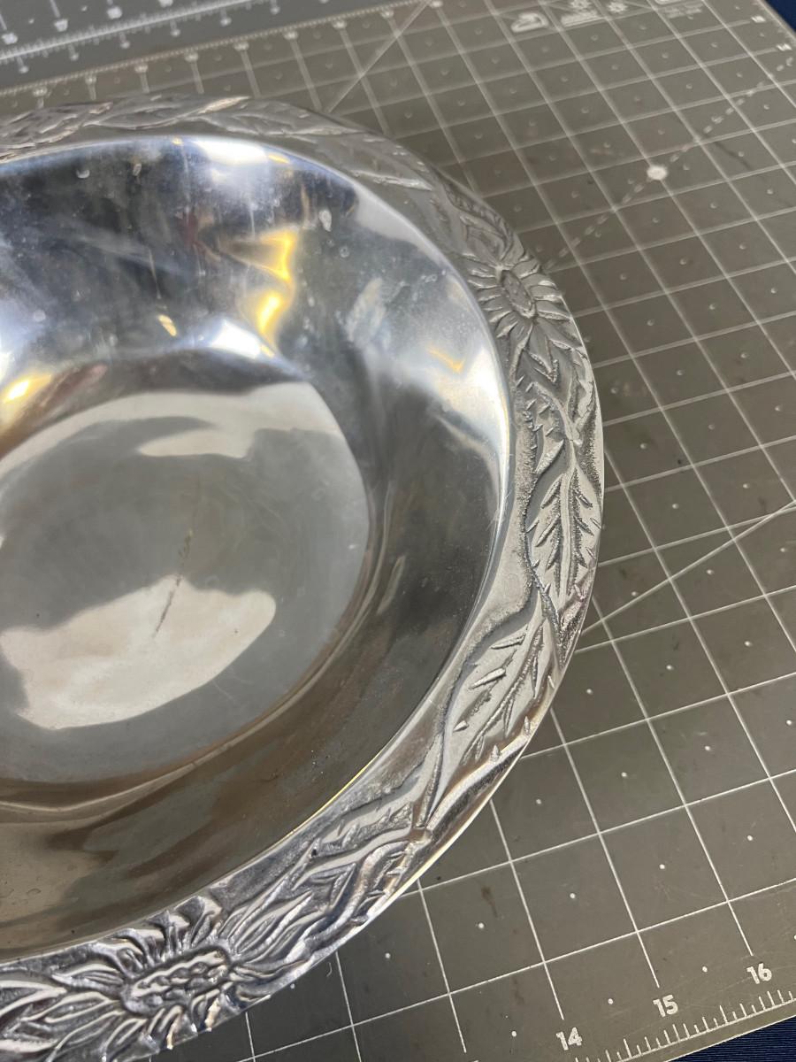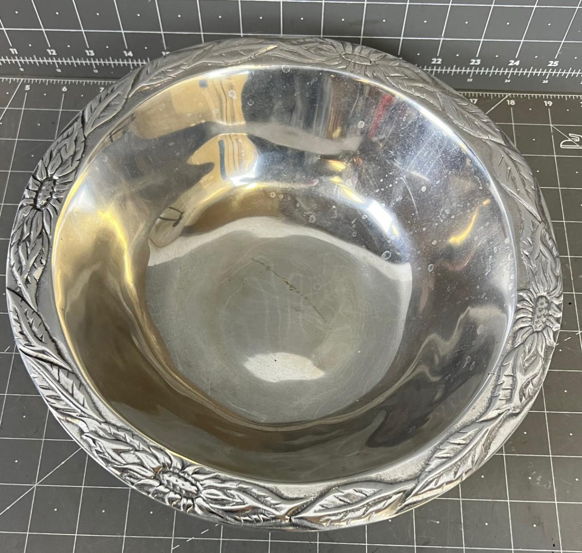 Cast Aluminum Serving Bowl, Sun Flower Motif