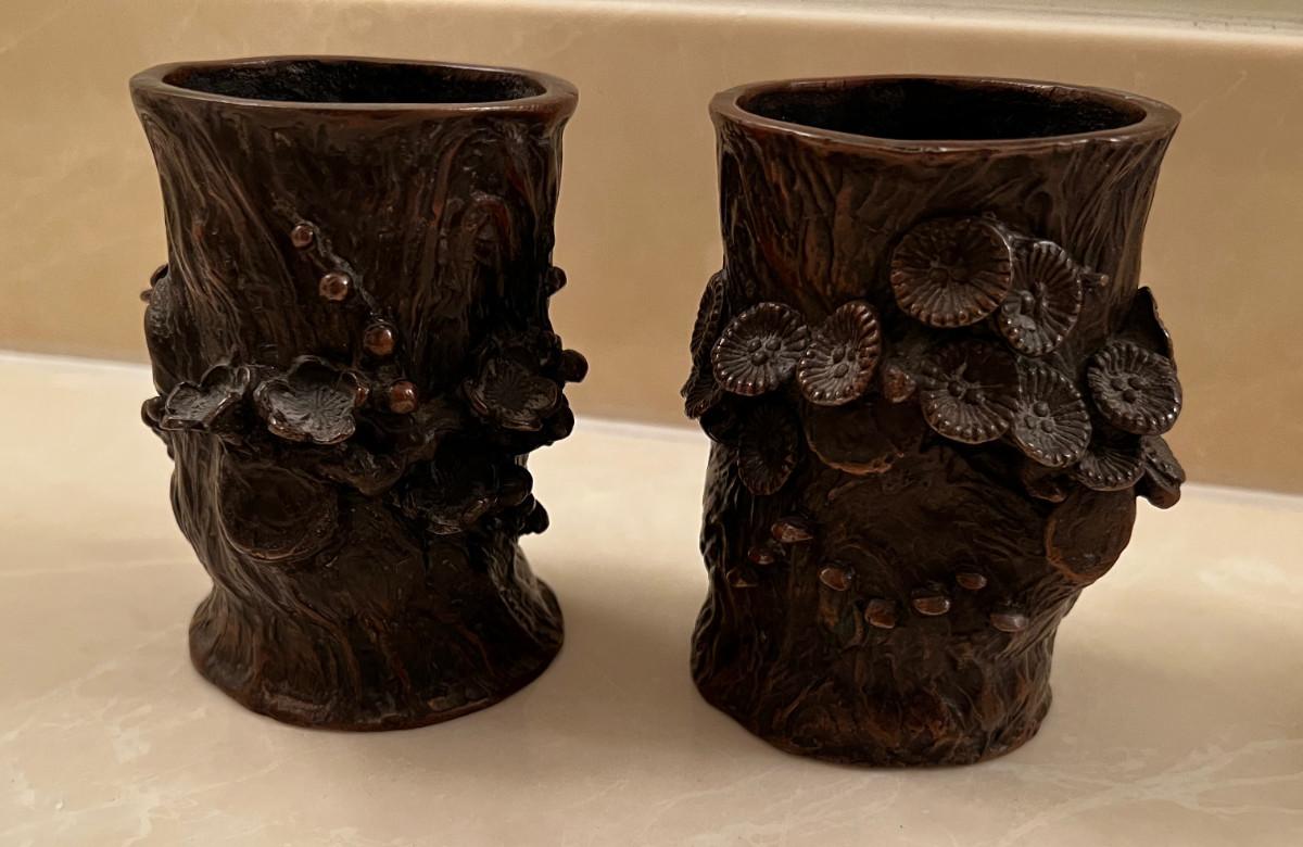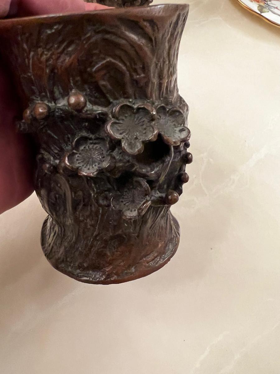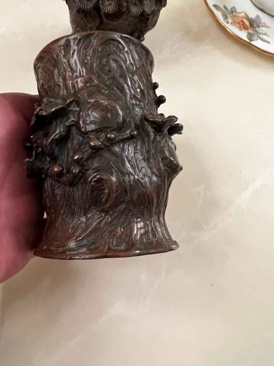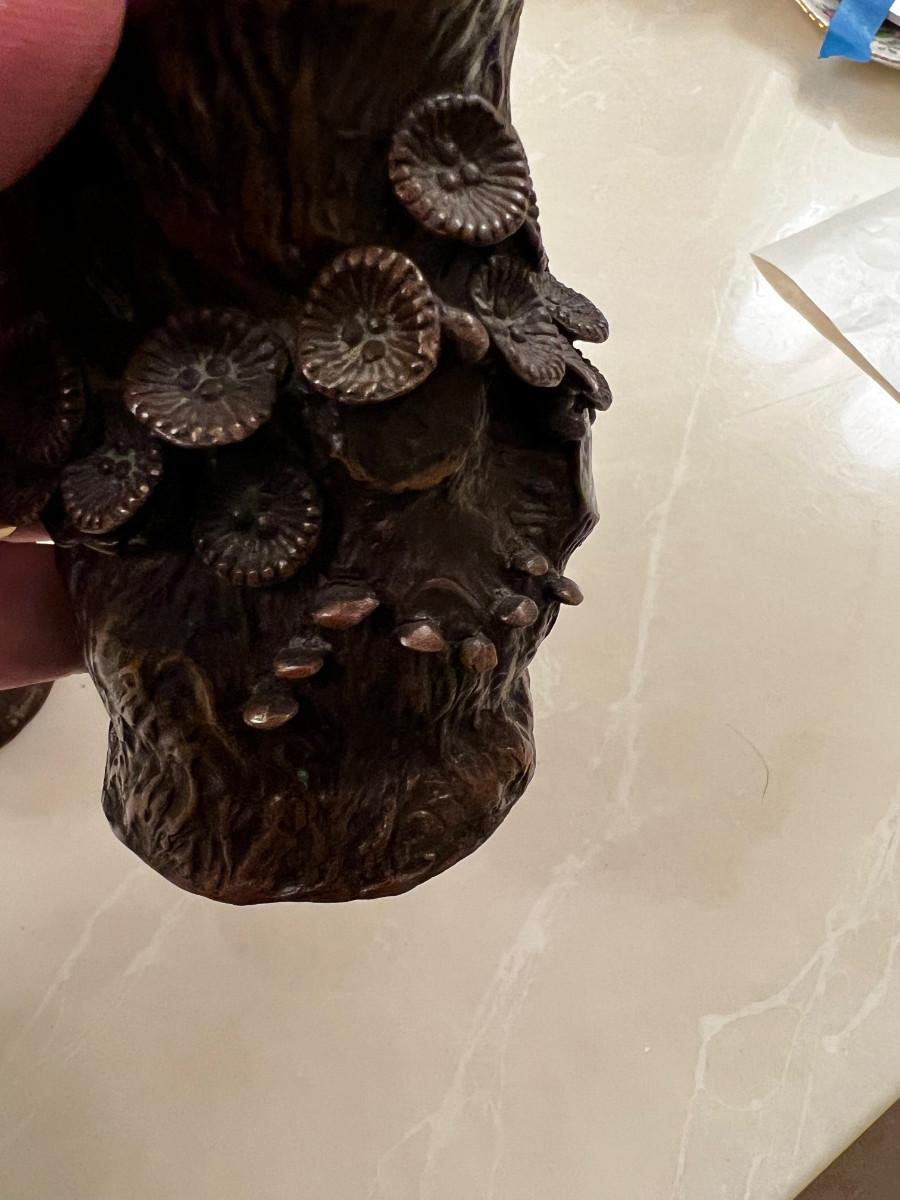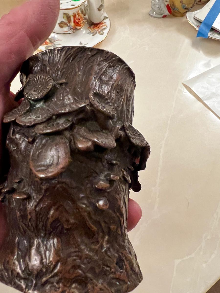 Cast Bronze Depicting a Tree Stump with Flower Vine perhaps Mushrooms