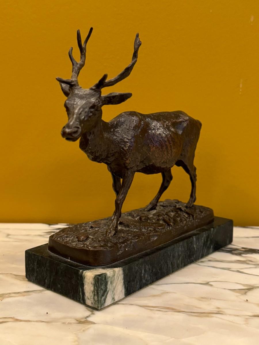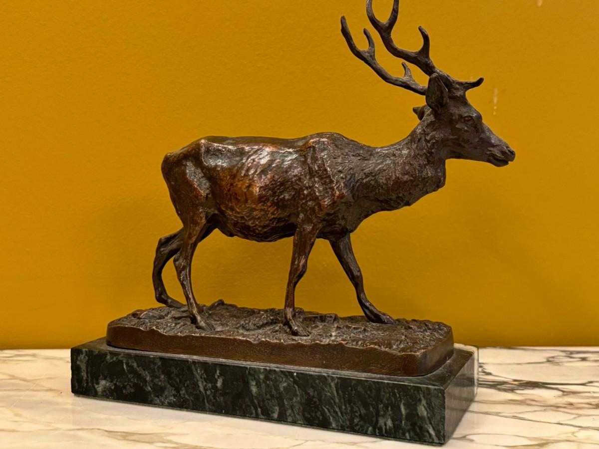 Cast Bronze Stag Sculpture on Marble Base