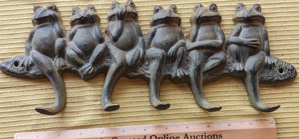 Cast Iron 11.75" Rustic Black Frogs Hanger
