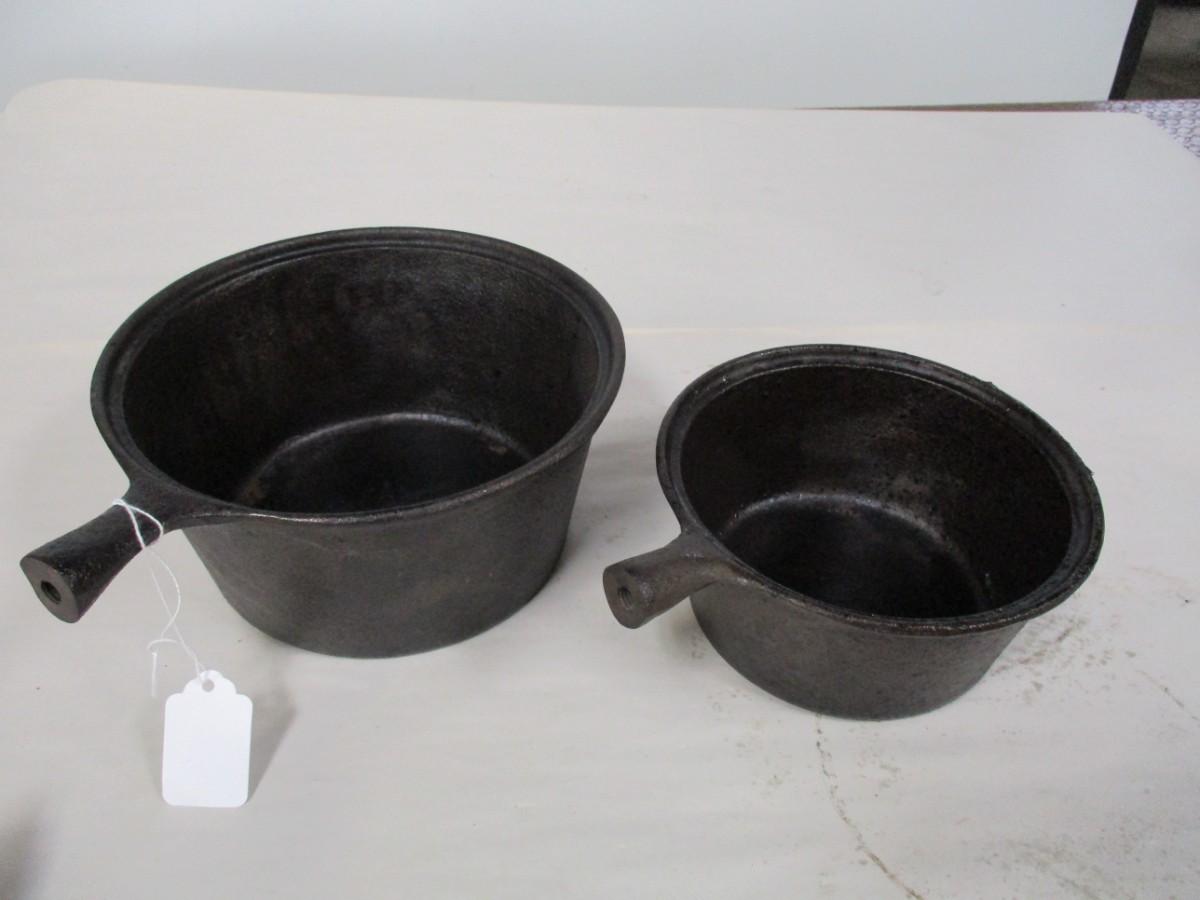 Cast Iron 2 Quart & 1 Quart Sauce Pans includes the Wood Handles (See all pictures)