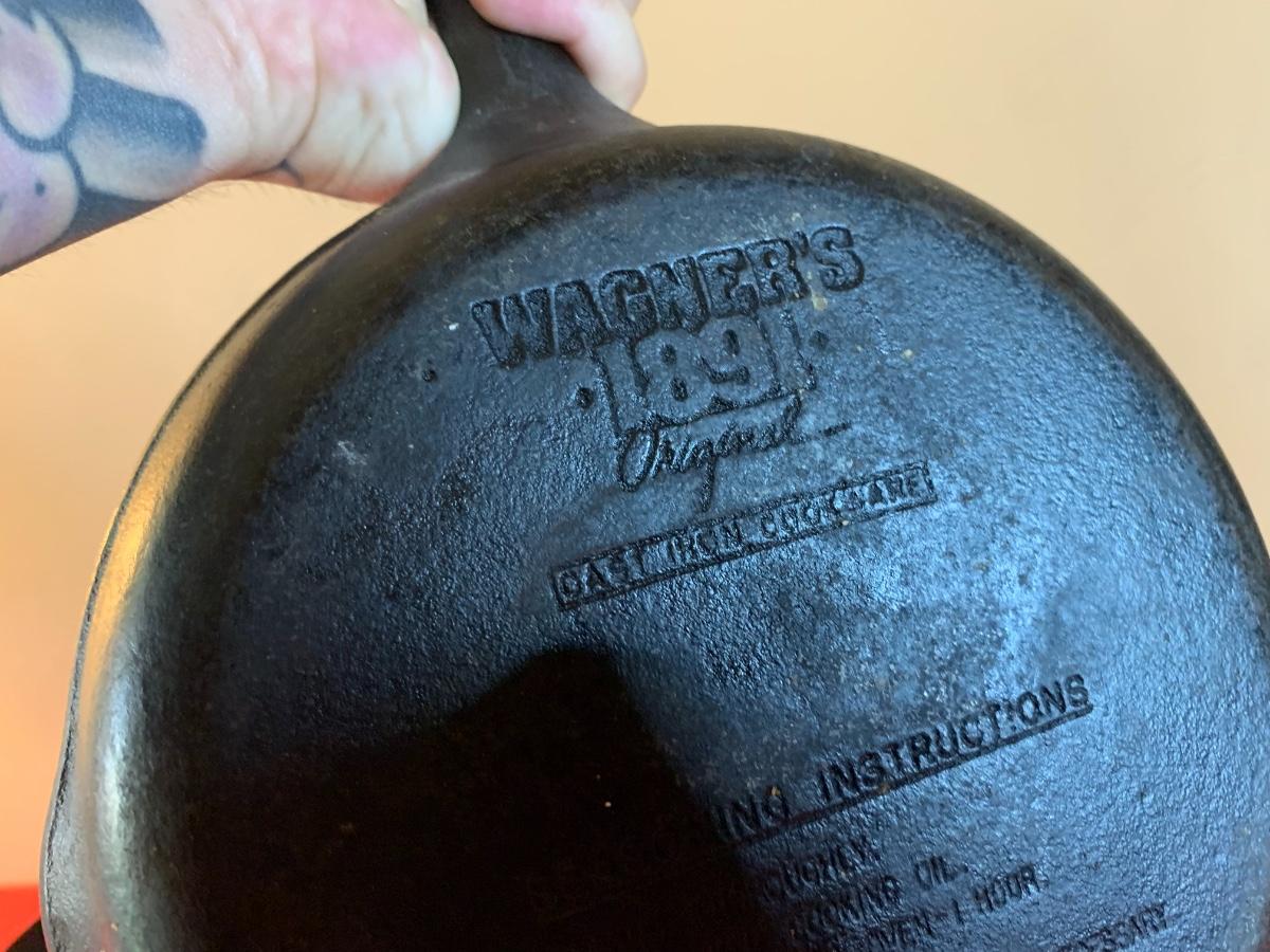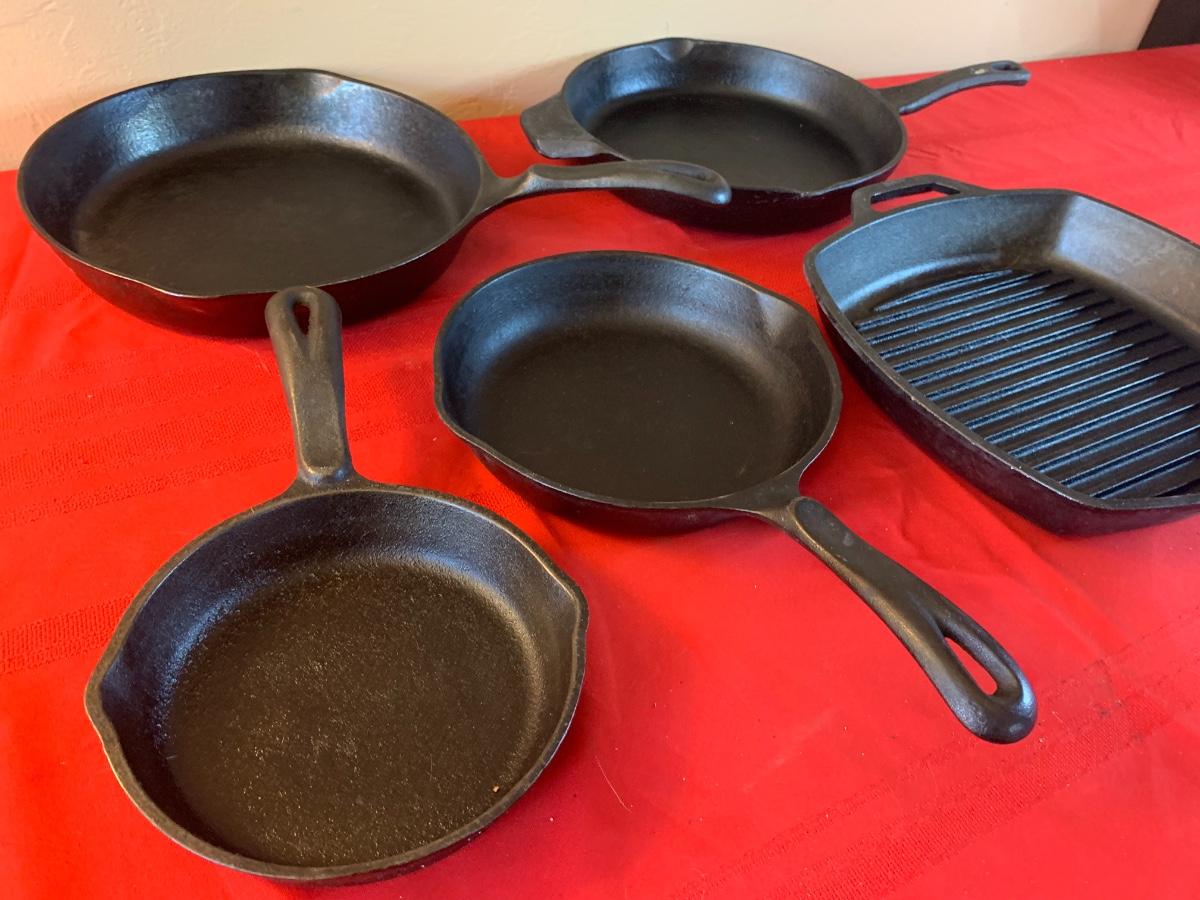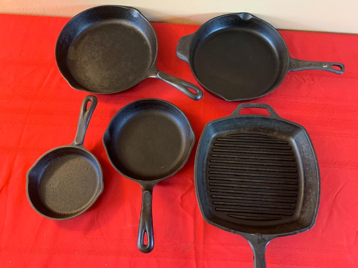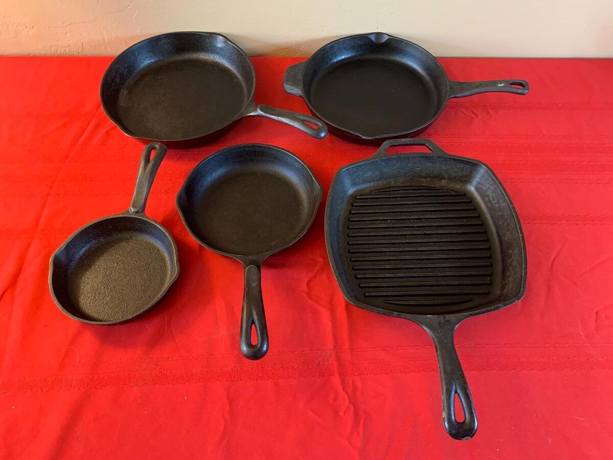 An assortment of cast iron pans by lodge, cast calphalon, new Wagner and more