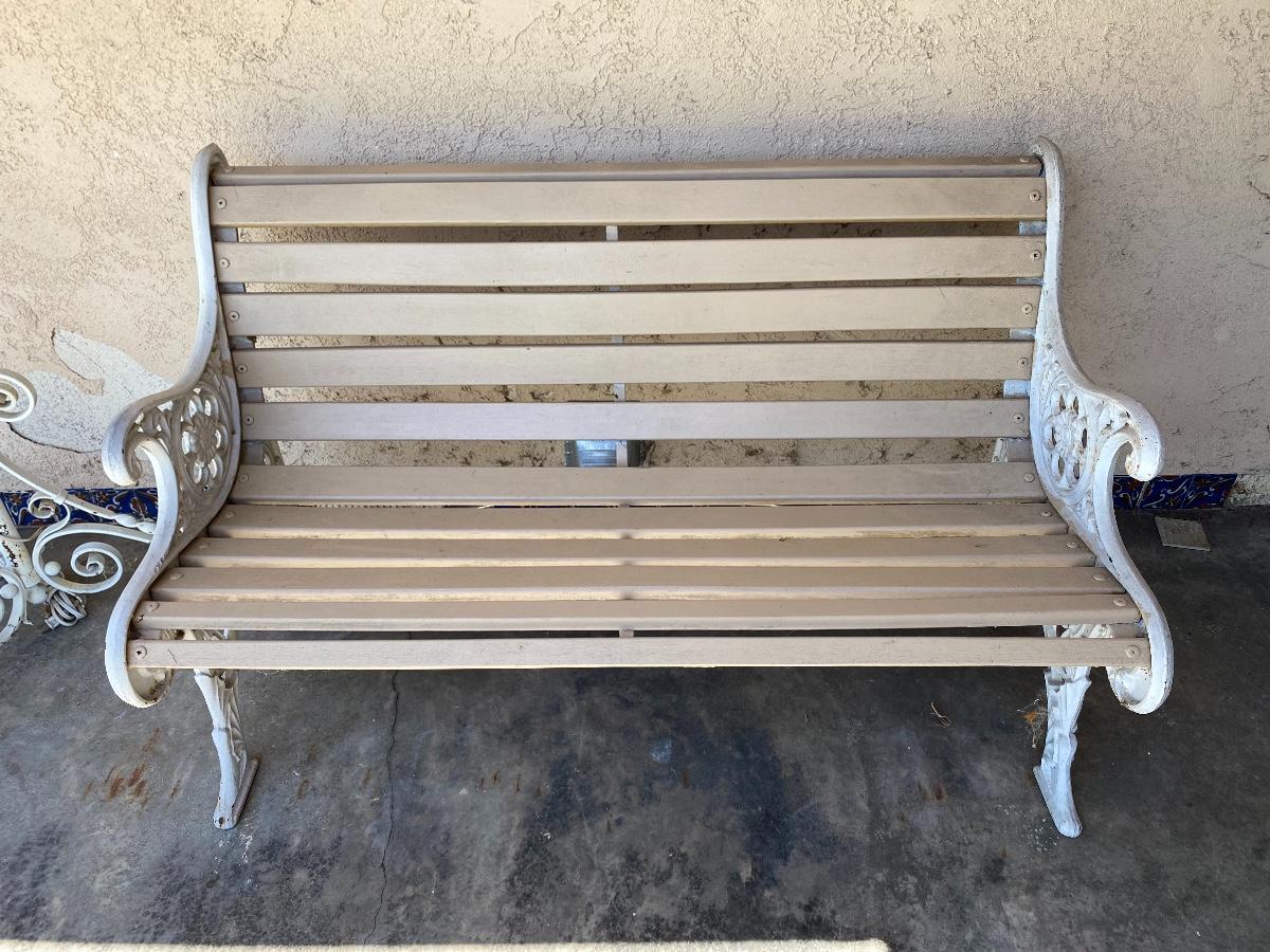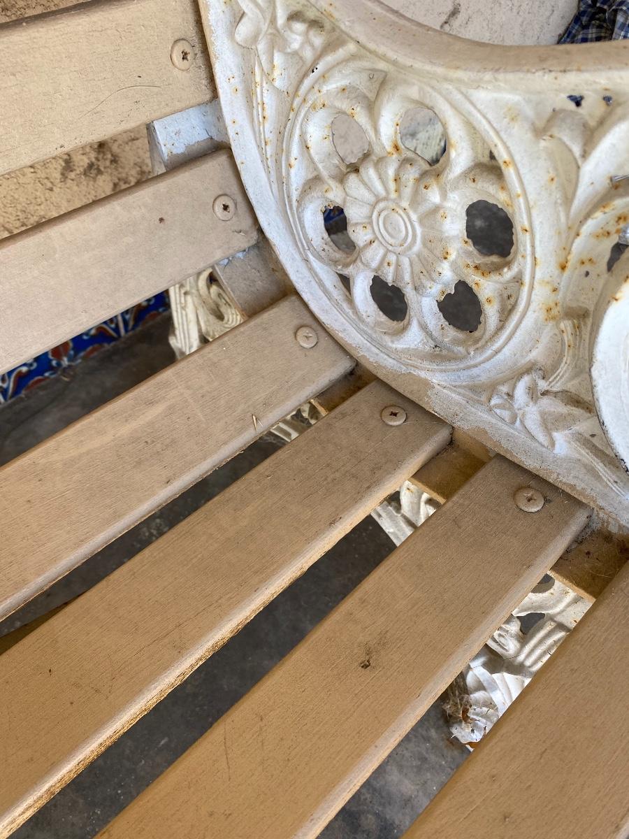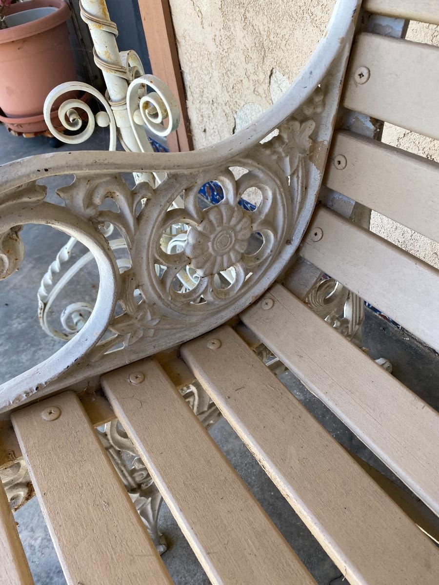 Cast iron and wood slat garden bench. In good outside condition.