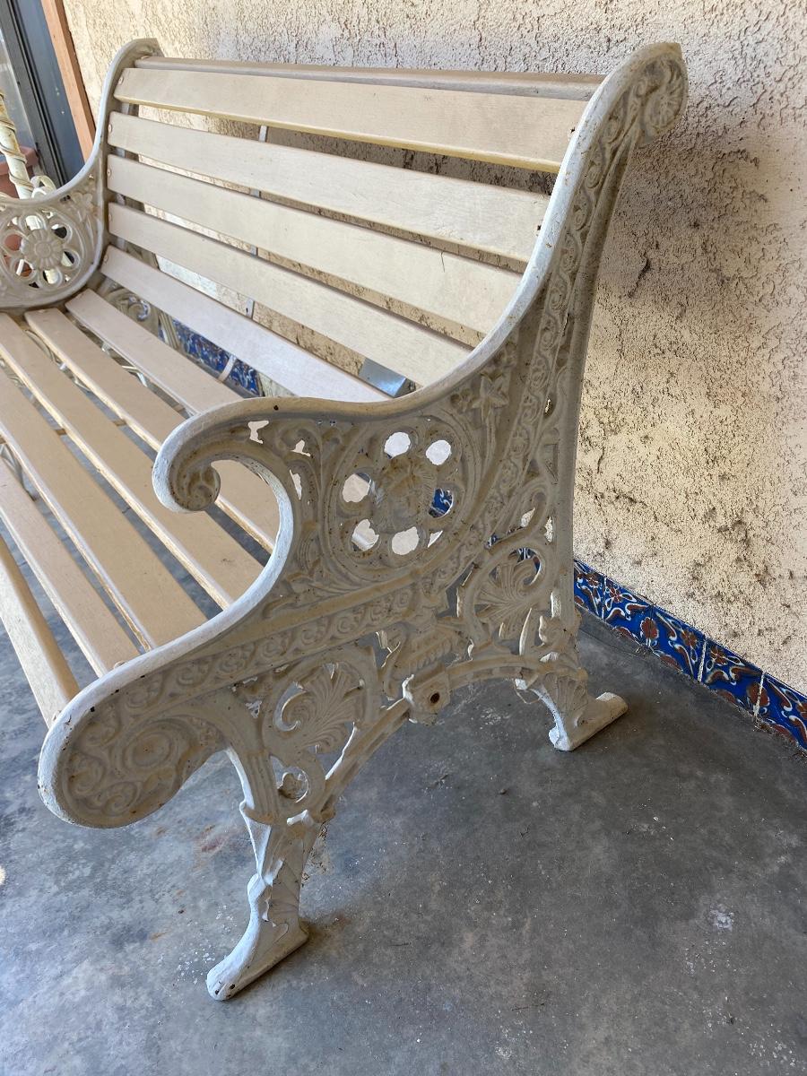 Cast iron and wood slat garden bench