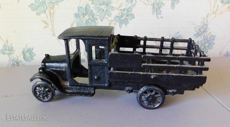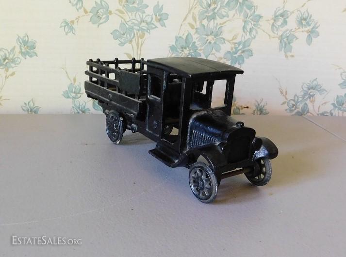 Cast iron farm truck model. All pieces are cast. About 8" in size. Needs cleaning. Very Heavy.