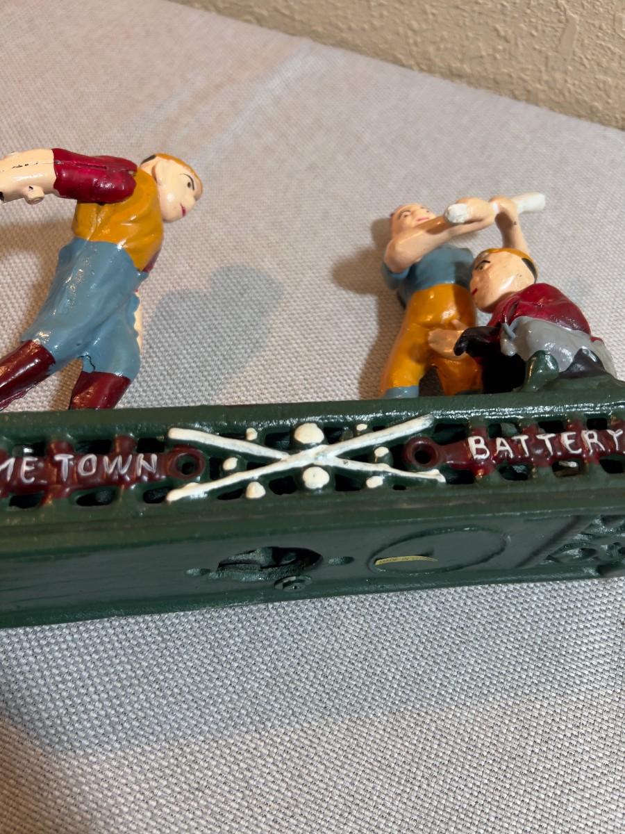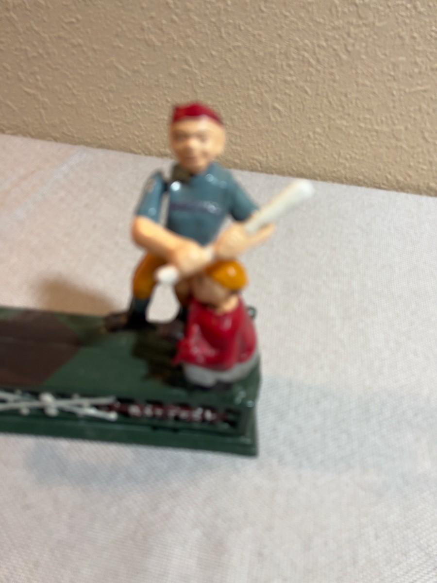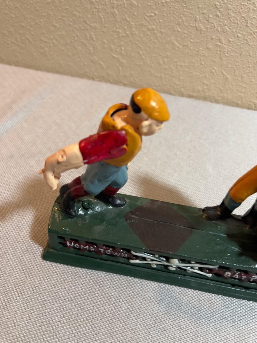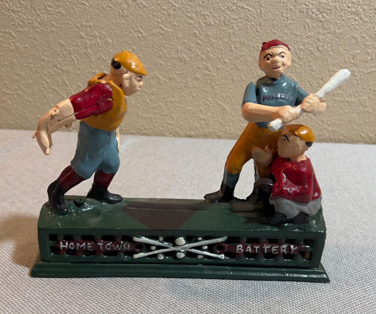 Cast Iron Antique Reproduction, "Hometown Batter" WOW! Bank!