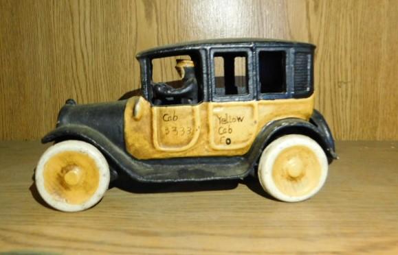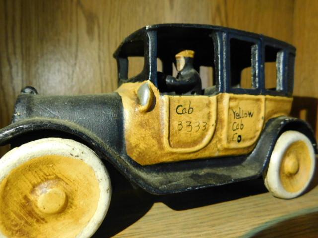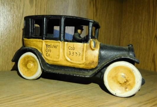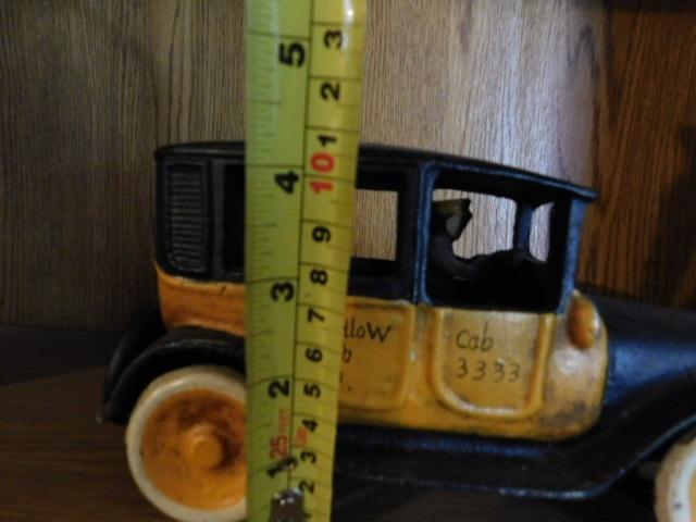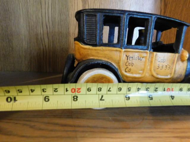 Cast Iron Antique Yellow Cab Car Toy 8"