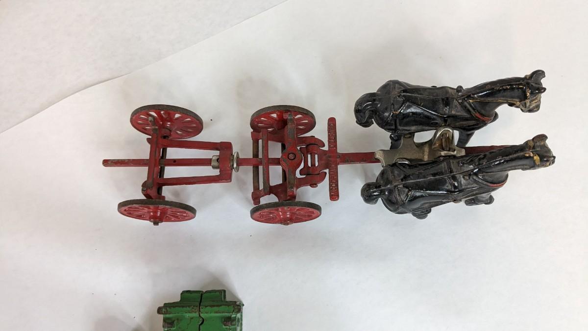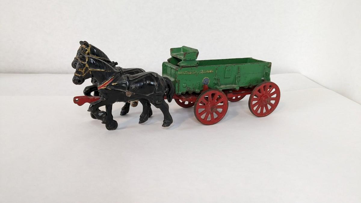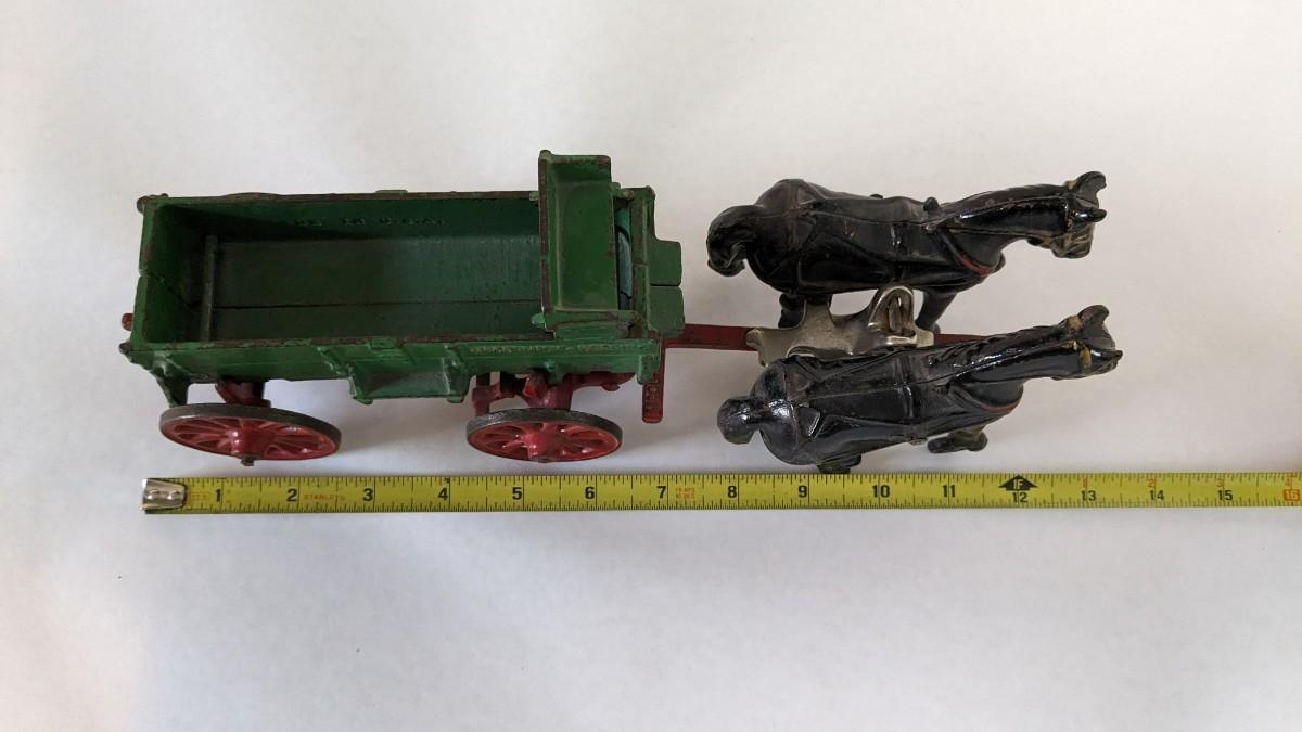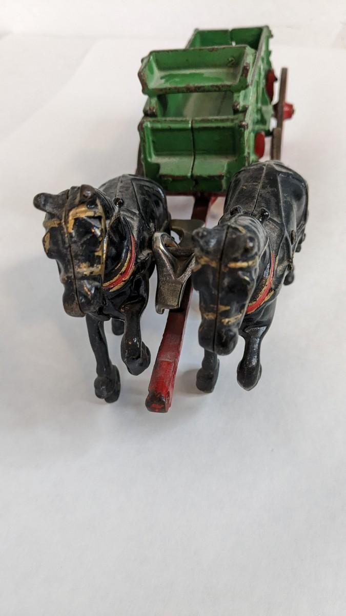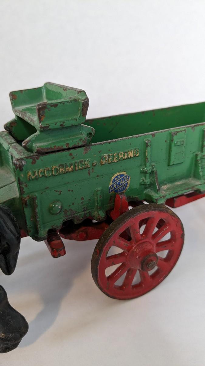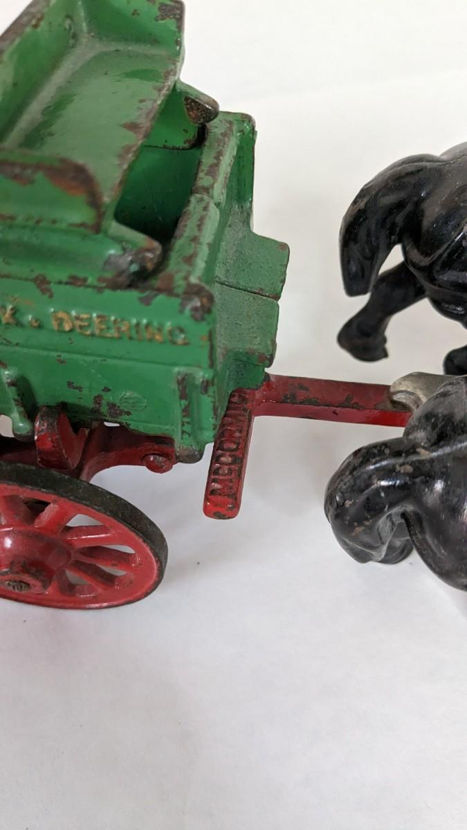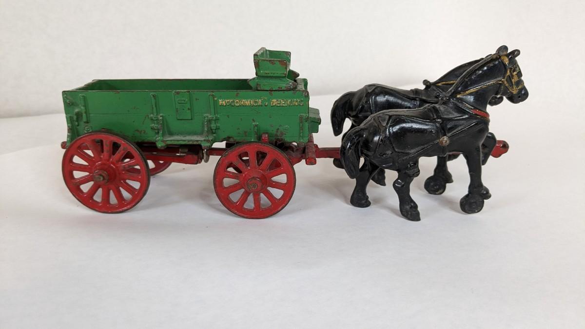 a great McCormick Deering side cast iron horse drawn toy. In fantastic condition with minimal paint loss and removable seat still intact!