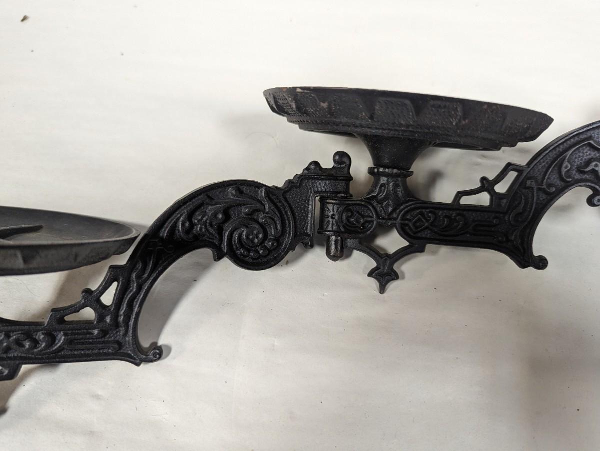 Cast Iron Articulating Double Arm Wall Sconce Candle Holder with Four Plates