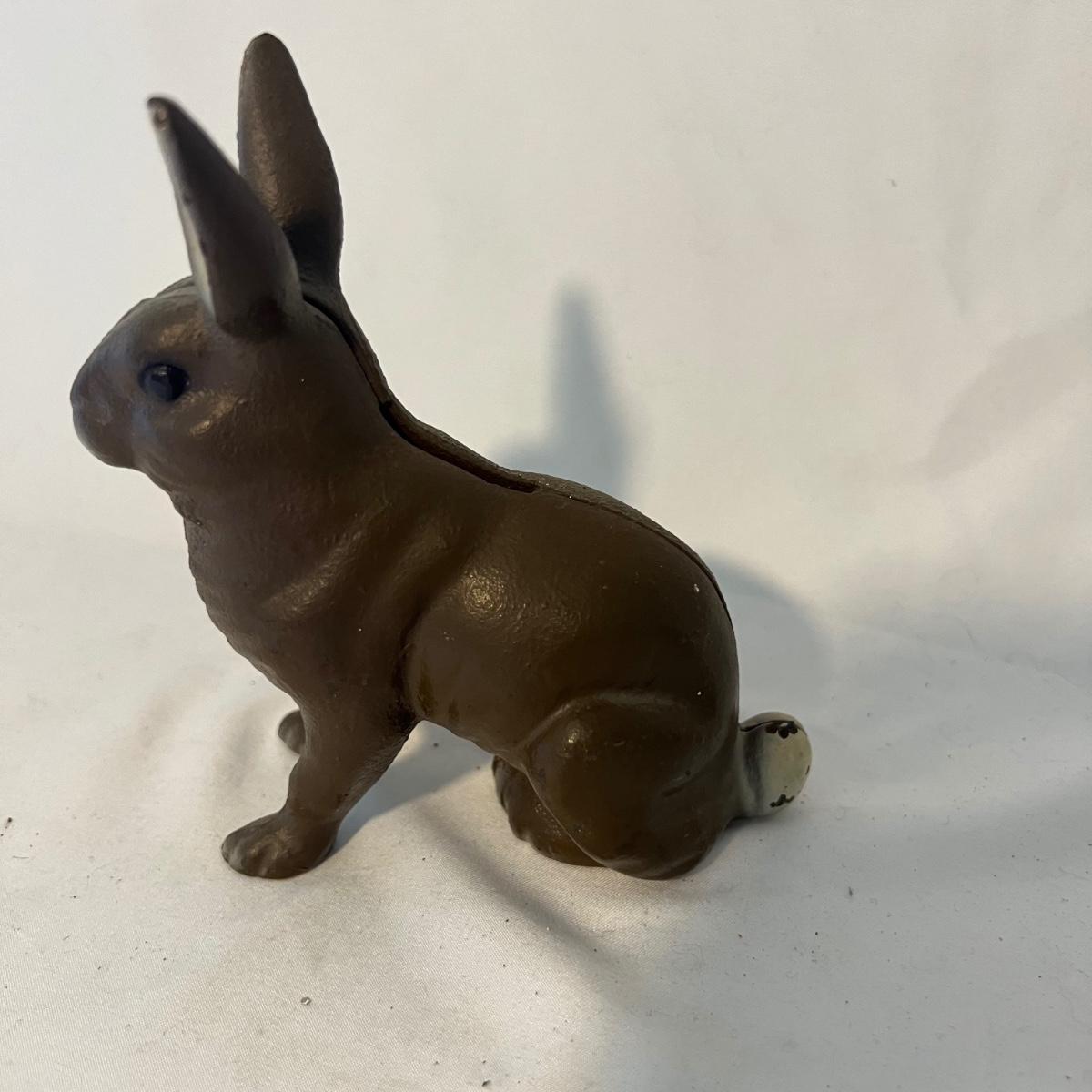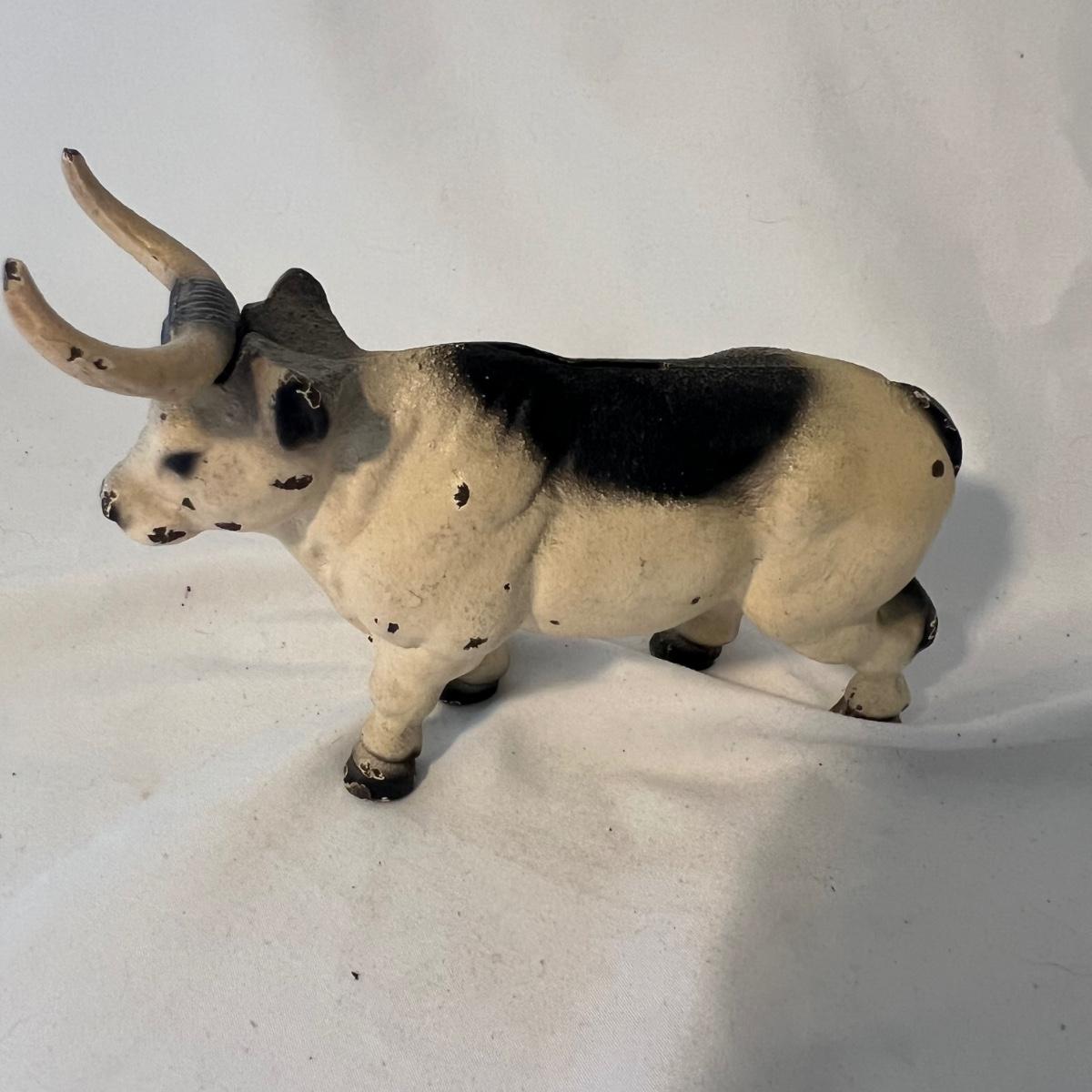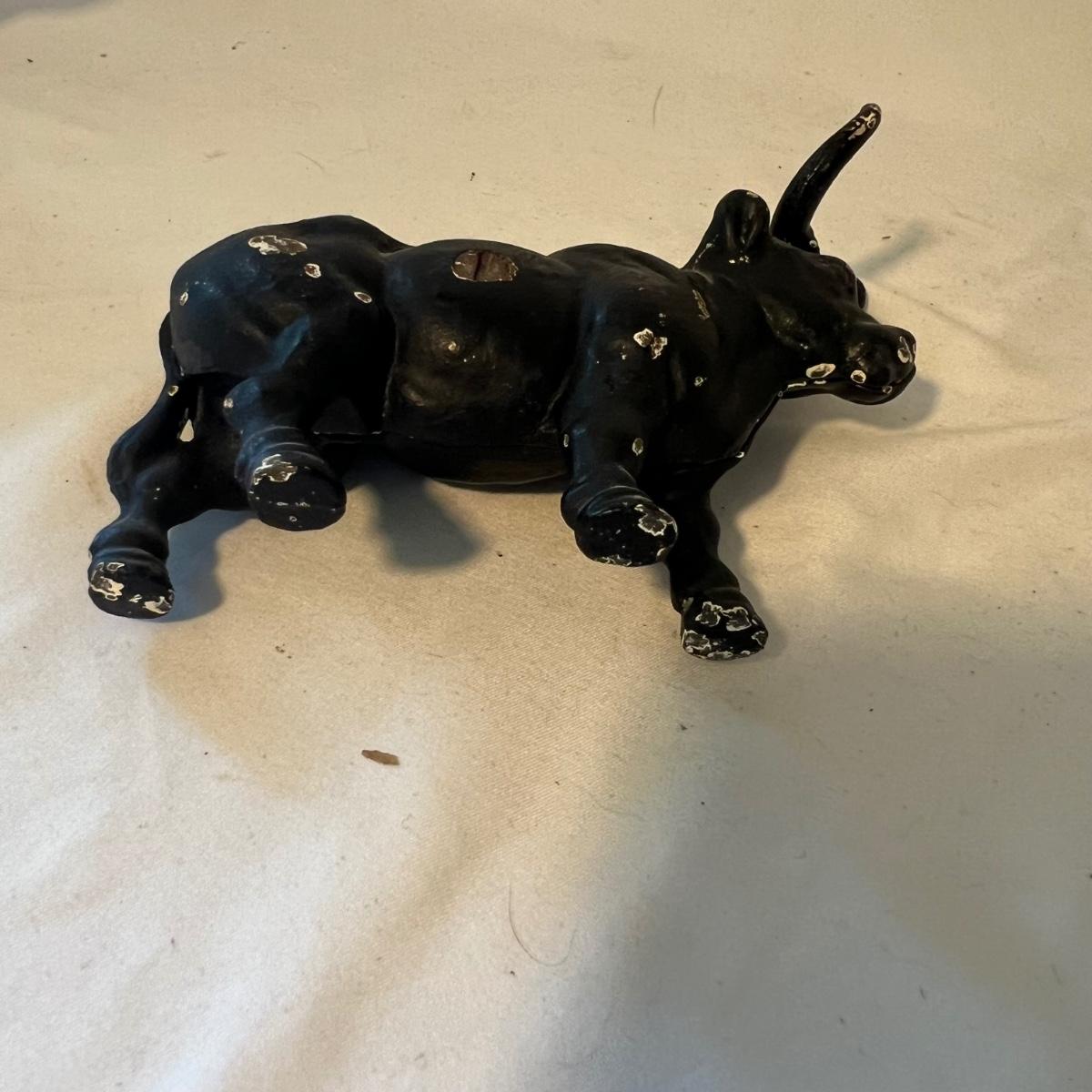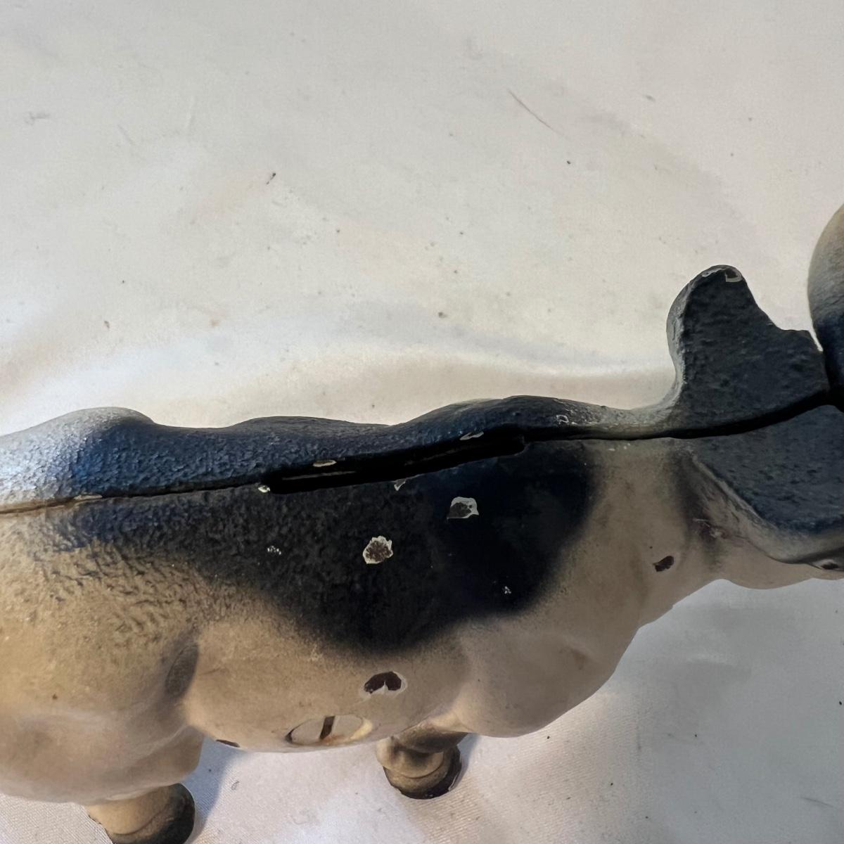 Five cast iron animal banks and one small cast iron steer. The animals and similarly sized and measure approximately 5” x 2” x 3.5”H.