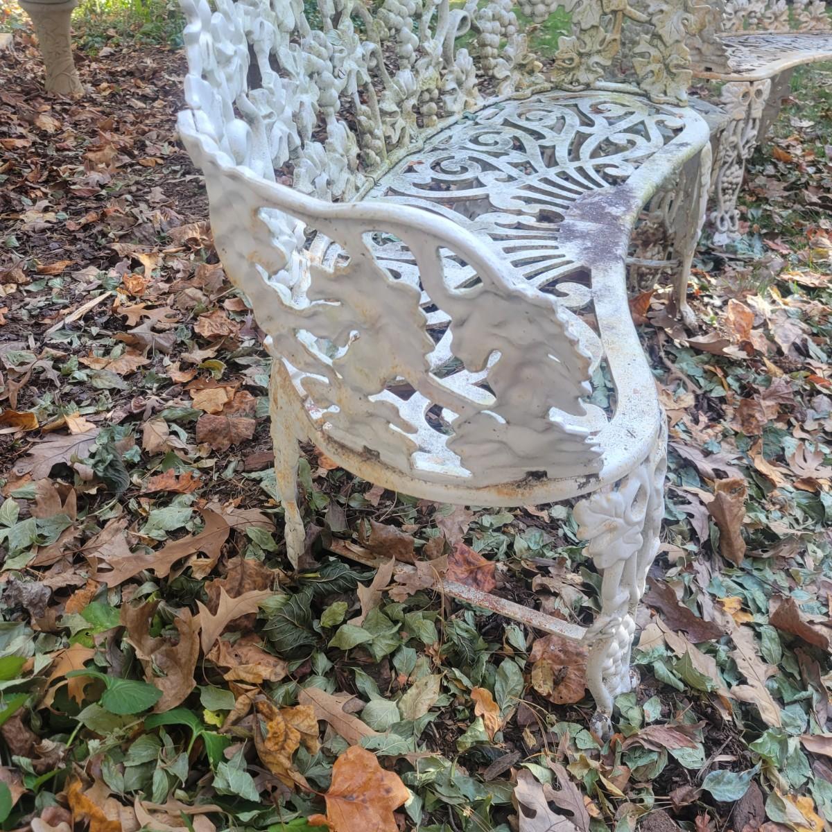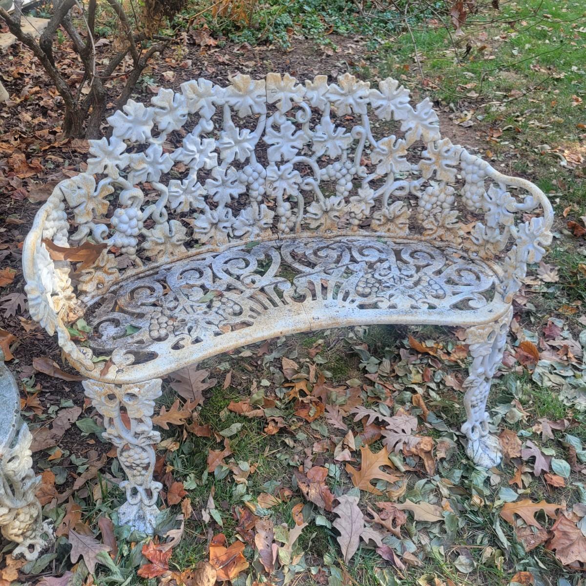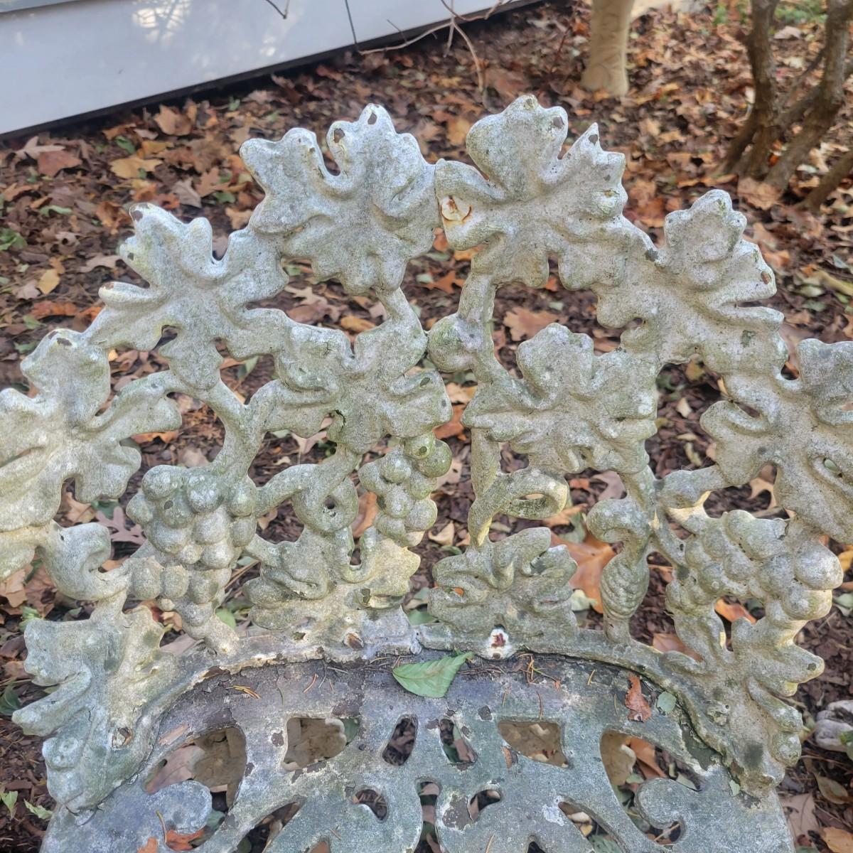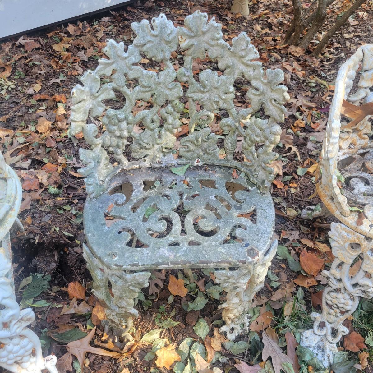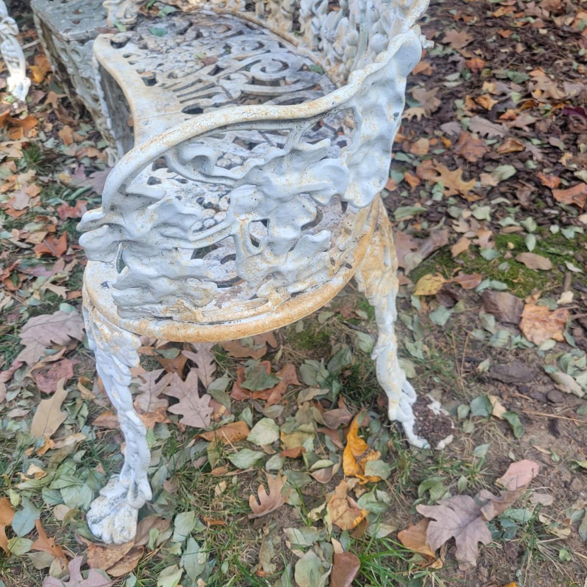 A pair of cast iron benches and a chair that have matching patterns. The benches measure approximately 40" x 16" x 28"H. They do show some rust and blemishes associated with being out of doors for a long period and there is some chipped paint. Local pickup only. Winning bidder must bring assistance to help move and load this item due to its weight and/or size.