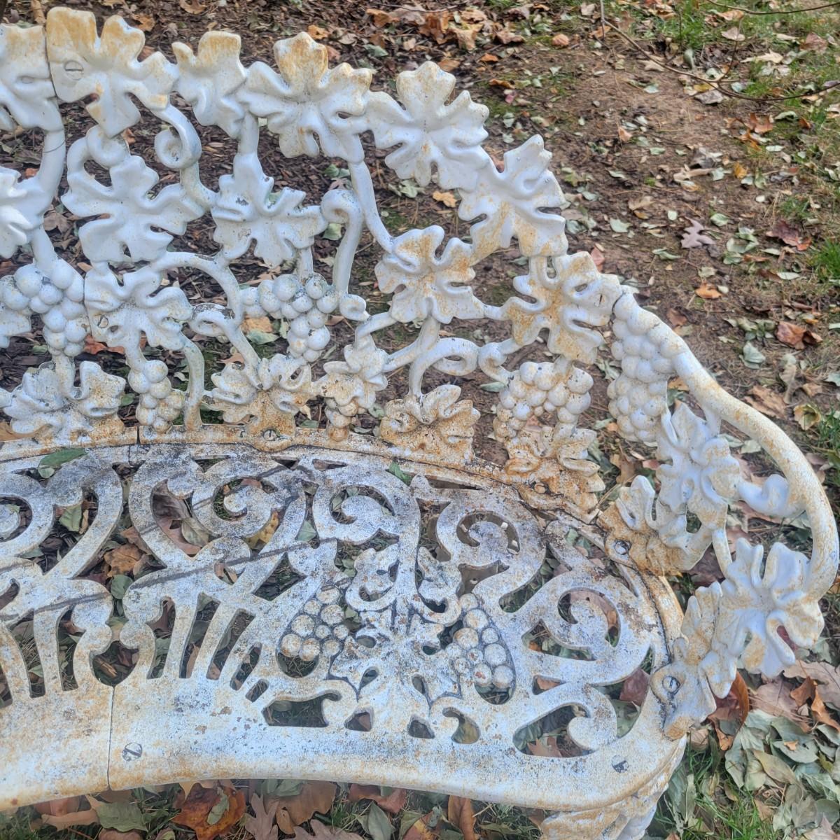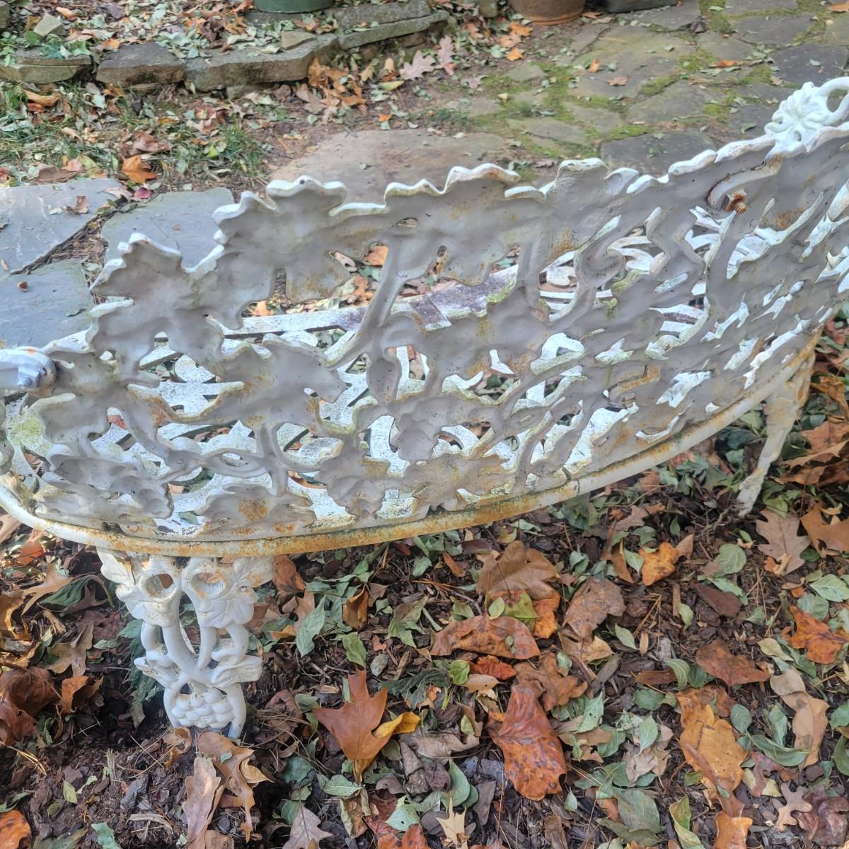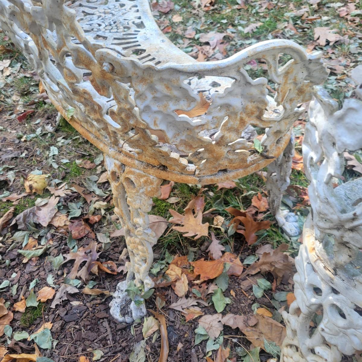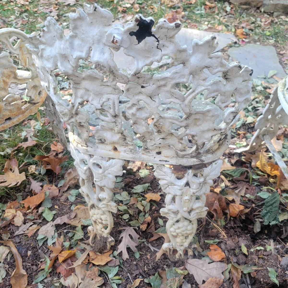 A pair of cast iron benches and a chair that have matching patterns. The benches measure approximately 40" x 16" x 28"H. They do show some rust and blemishes associated with being out of doors for a long period and there is some chipped paint. Local pickup only. Winning bidder must bring assistance to help move and load this item due to its weight and/or size.