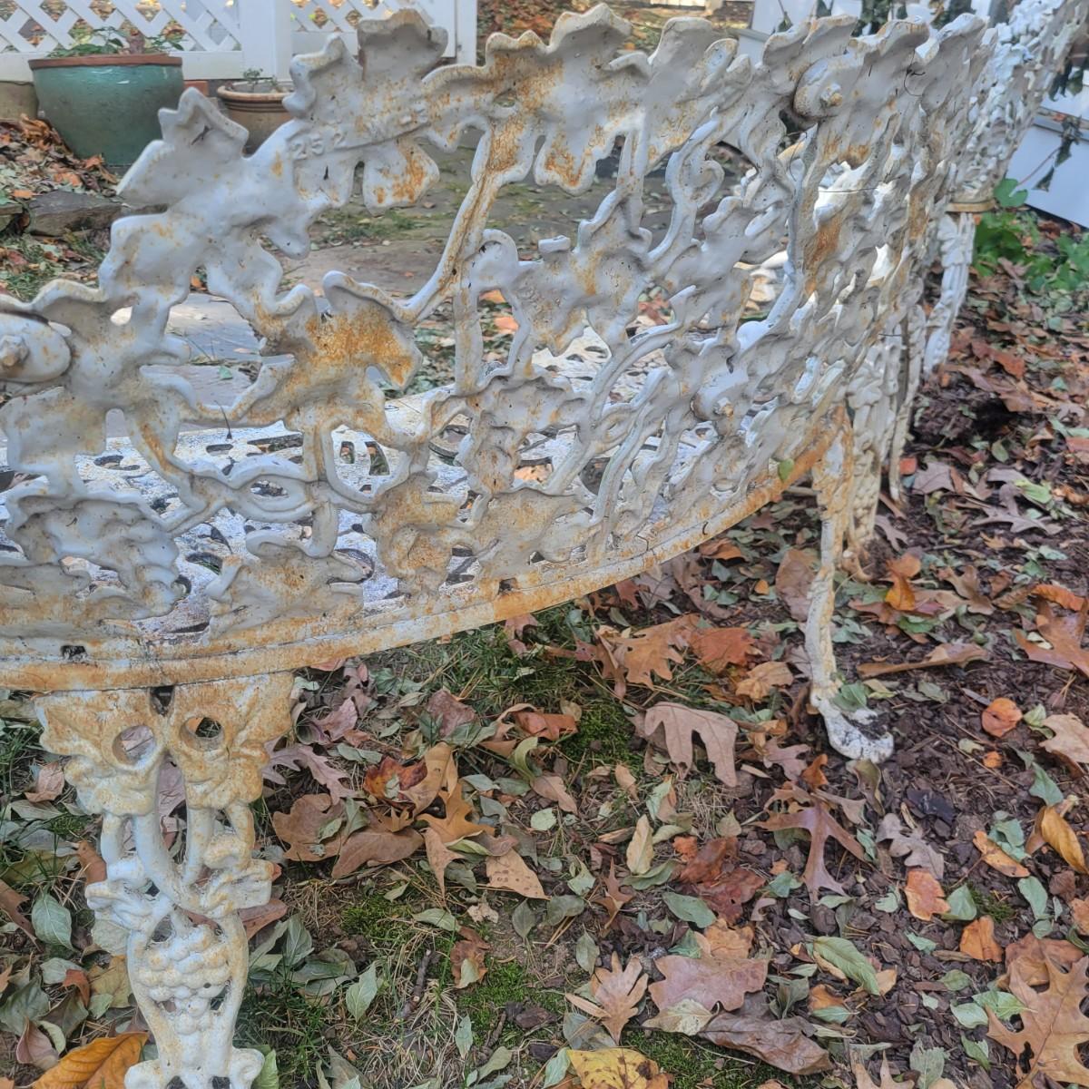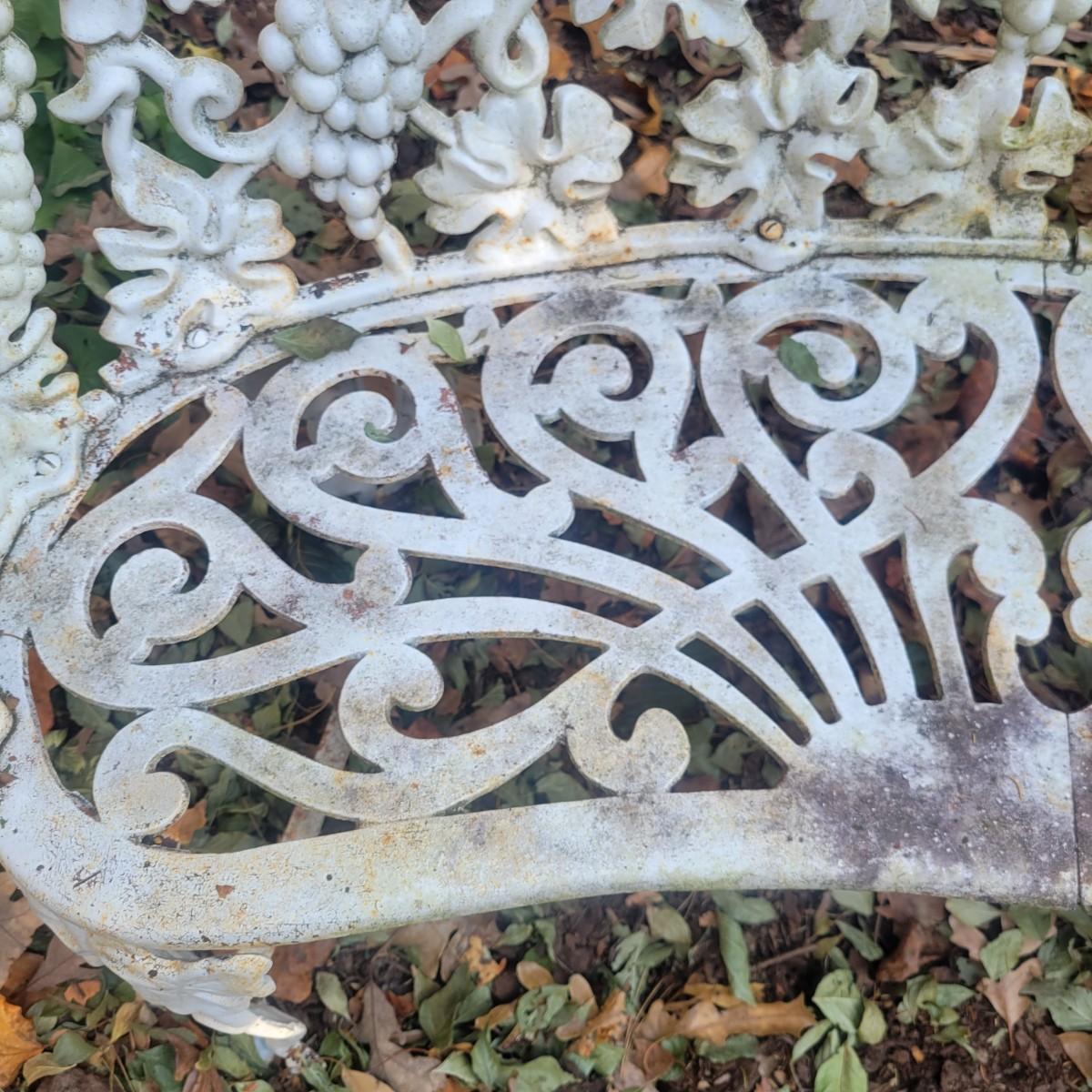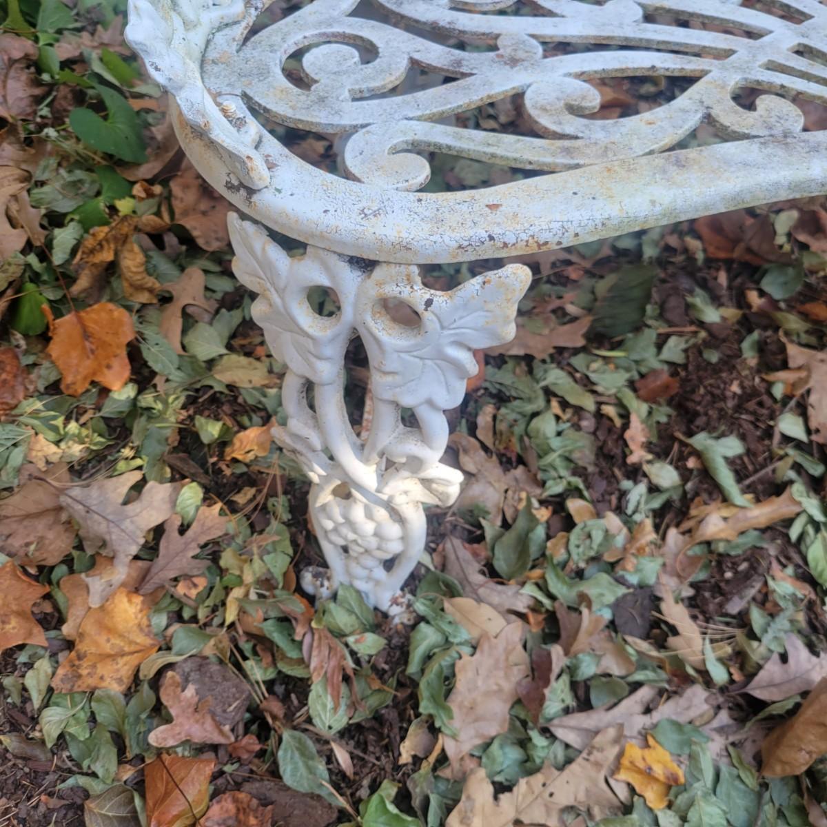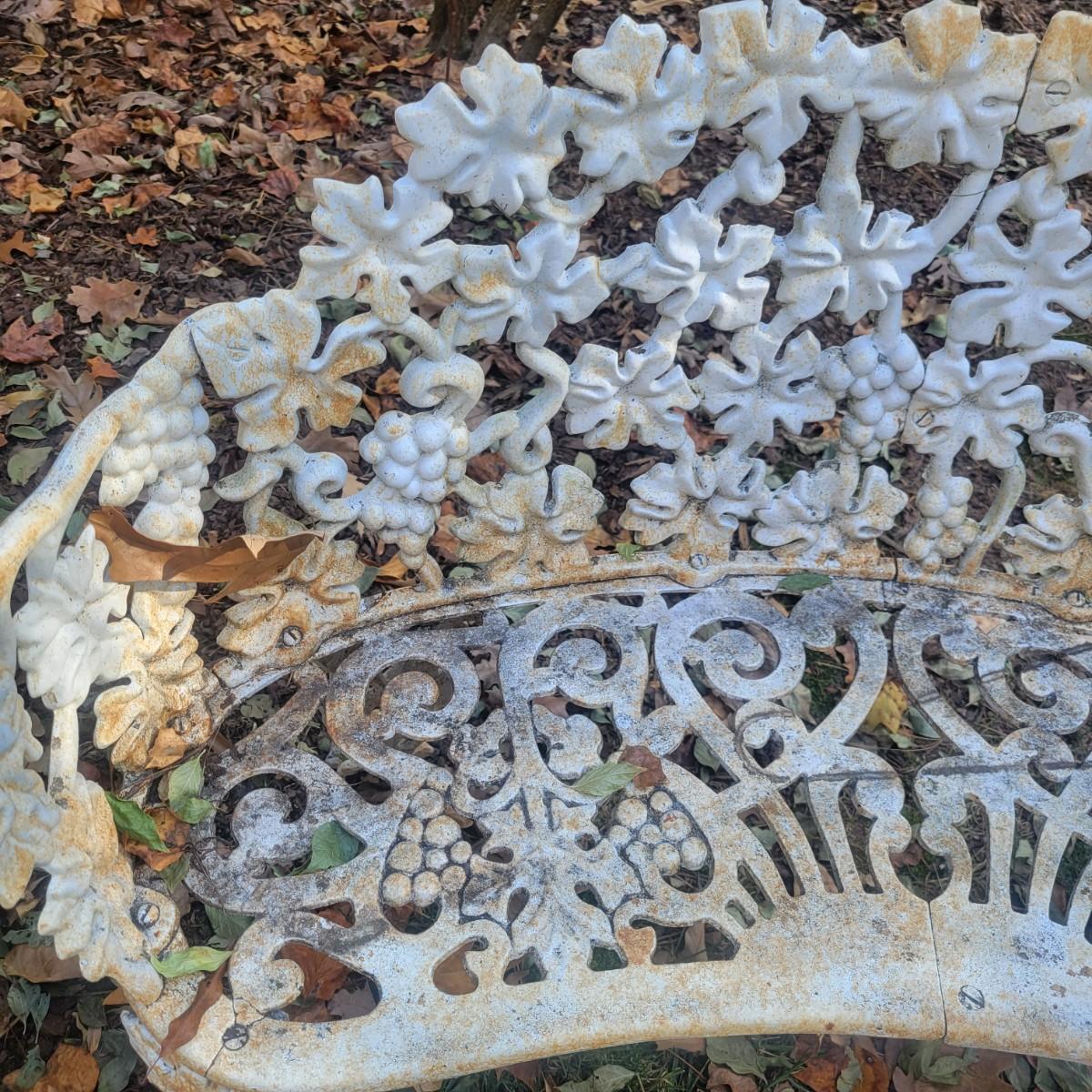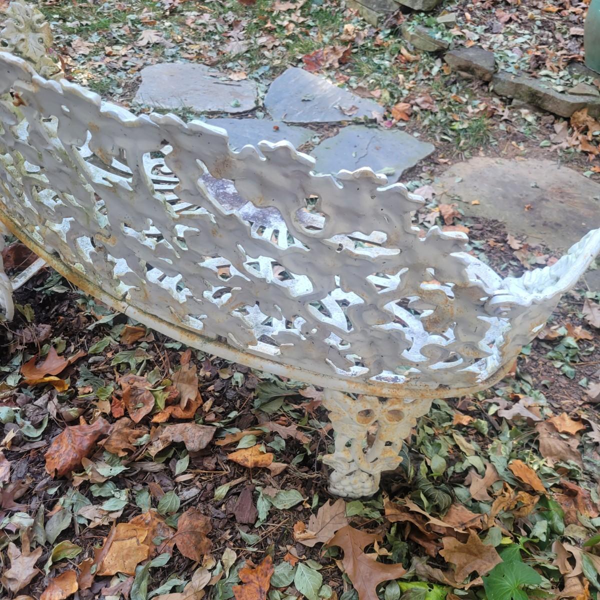 A pair of cast iron benches and a chair that have matching patterns. The benches measure approximately 40" x 16" x 28"H. They do show some rust and blemishes associated with being out of doors for a long period and there is some chipped paint. Local pickup only. Winning bidder must bring assistance to help move and load this item due to its weight and/or size.