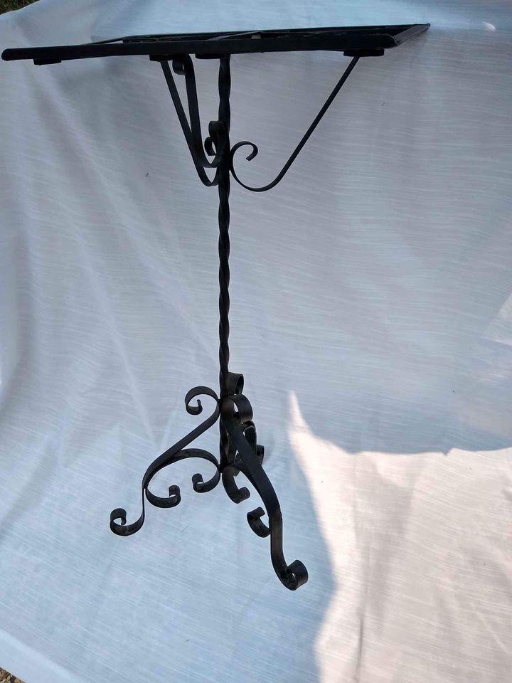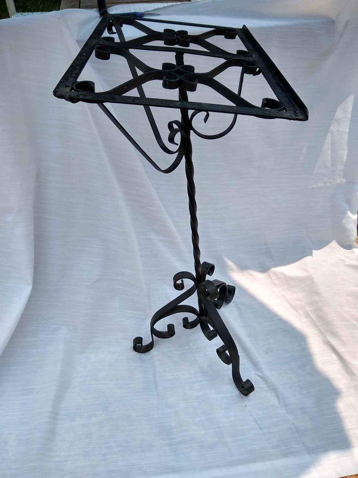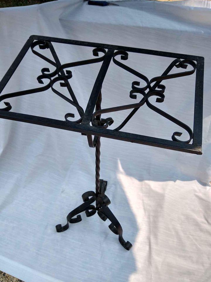 Cool music or bookstand. Scrolly black iron design. Twisted stem. Heavy and sturdy. Great for front of house menu display in a restaurant or for wedding guest sign in or in your home to display a favorite book or Family Bible. Top does not swivel. It's stationary.