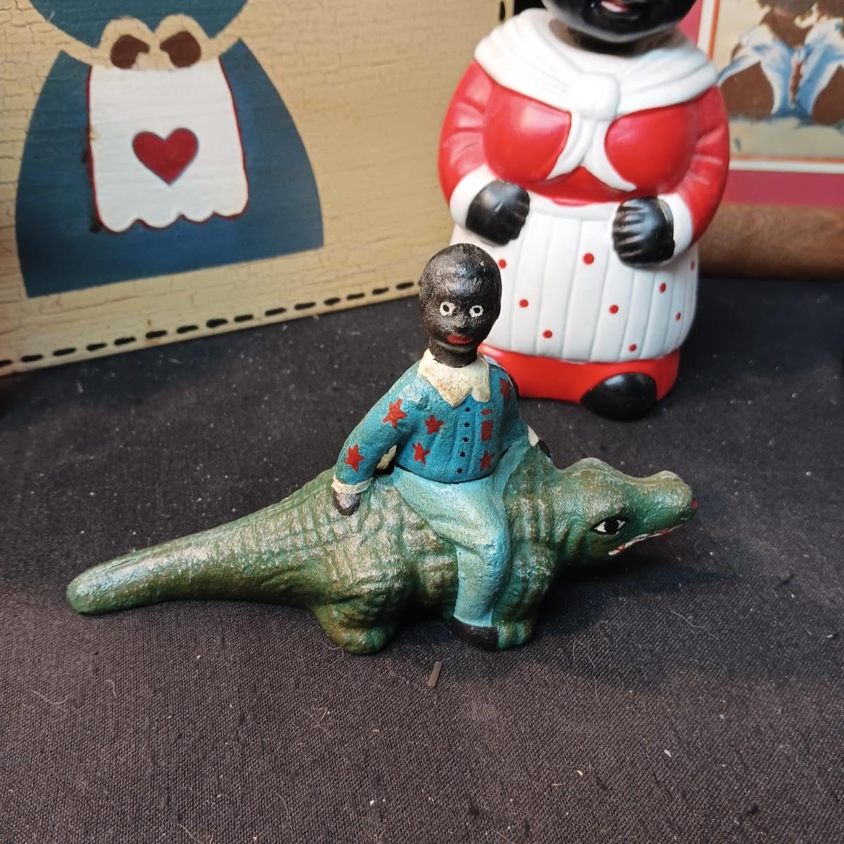 CAST IRON BOY ON A ALLIGATOR, WALL ART, BOBBLEHEAD COIN BANK AND MORE