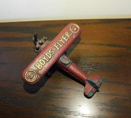 Cast Iron Boyd's Flyer Fixed Wing Collector Airplane Part of 'Red Bearon' Collection 6" in very good condition and solid. Very heavy with paint intact.