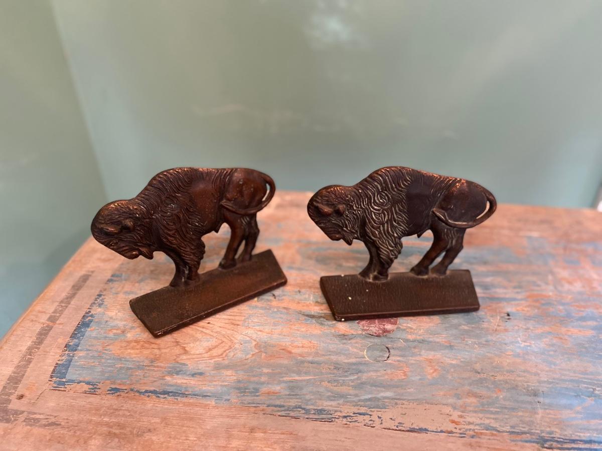 Antique Western Americana Cast Iron Buffalo Bison Bookends