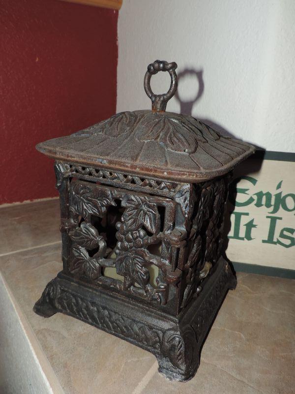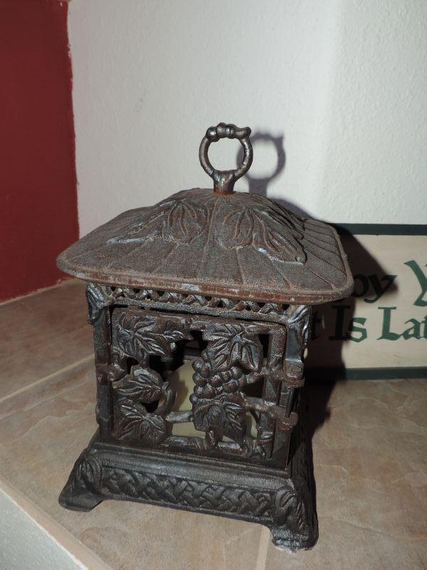 LOT 218  CAST IRON CANDLE HOLDER AND DECOR