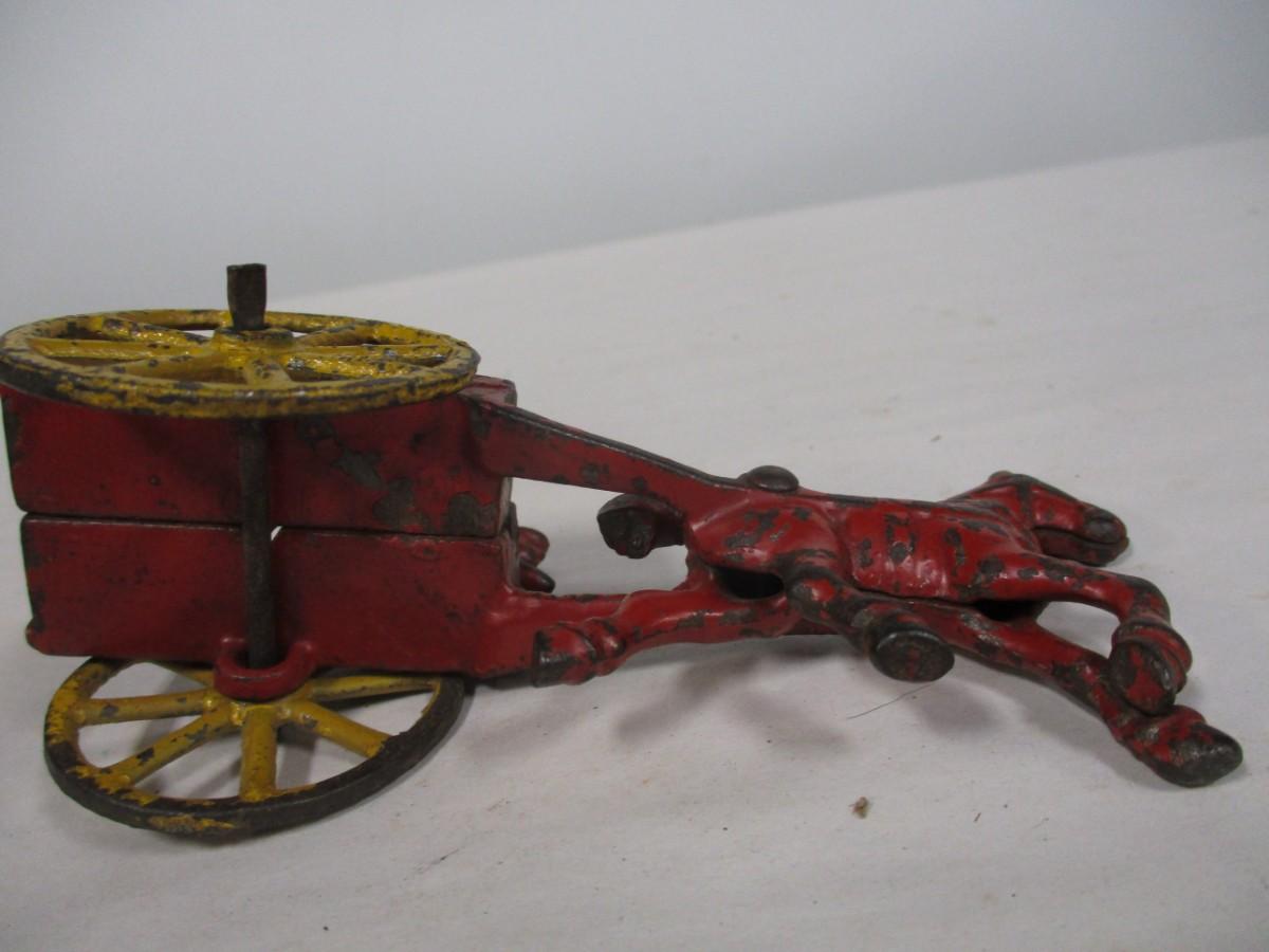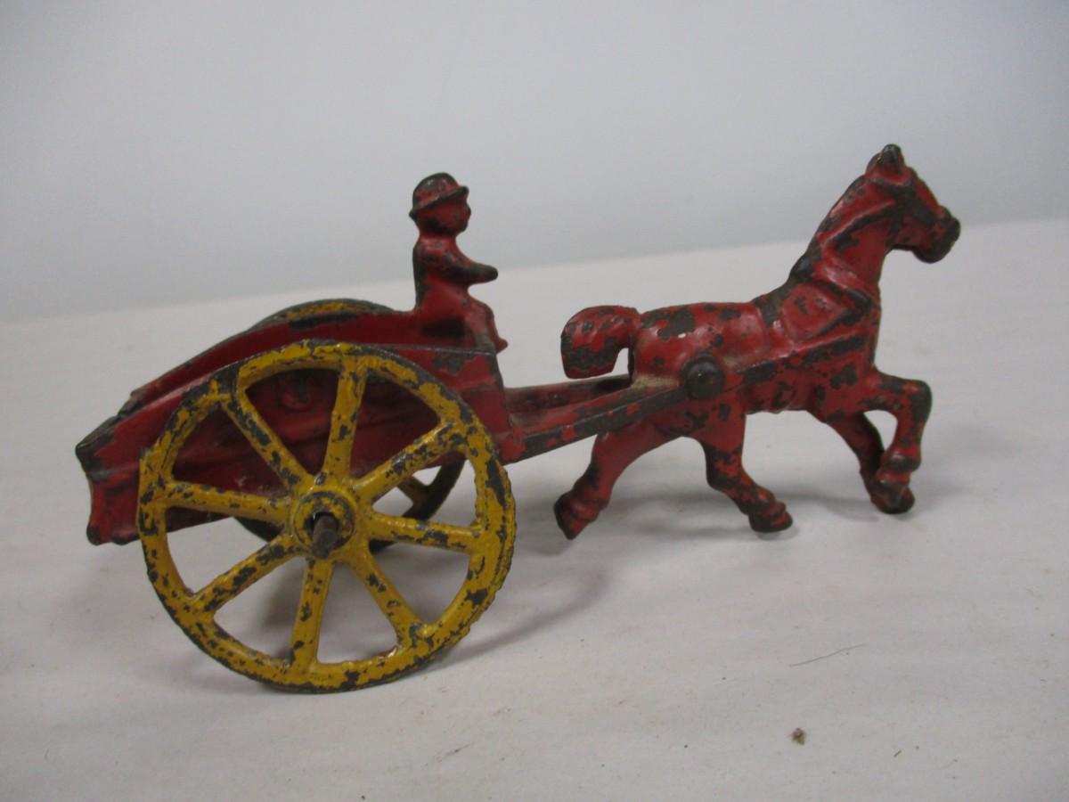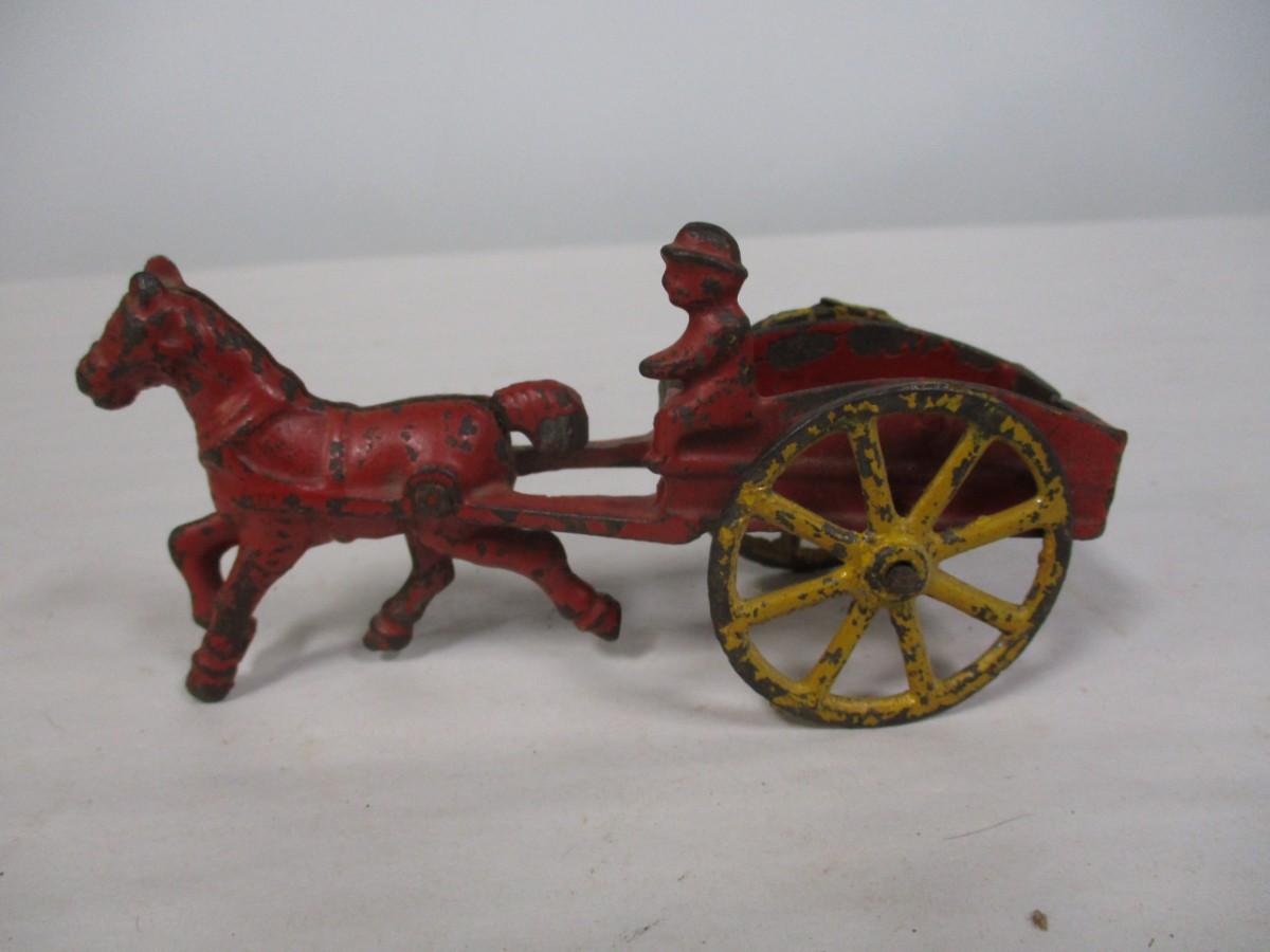 Vintage Cast Iron Horse Drawn Cart with Driver