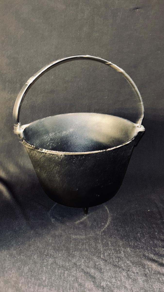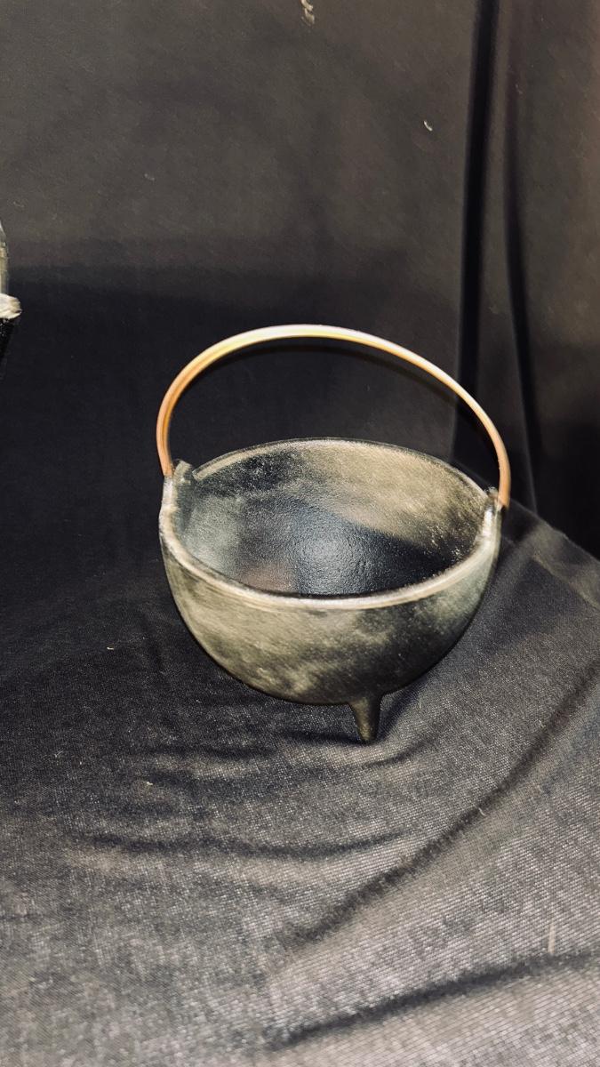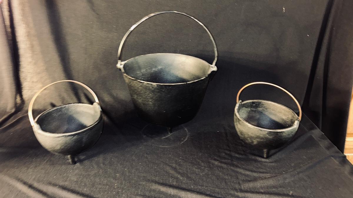 CAST IRON CAULDRON AND 2 MATCHING SMALLER CAULDRONS