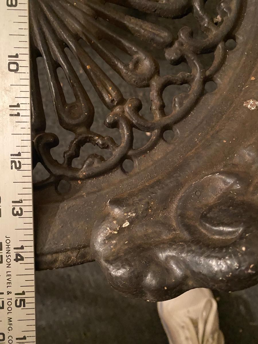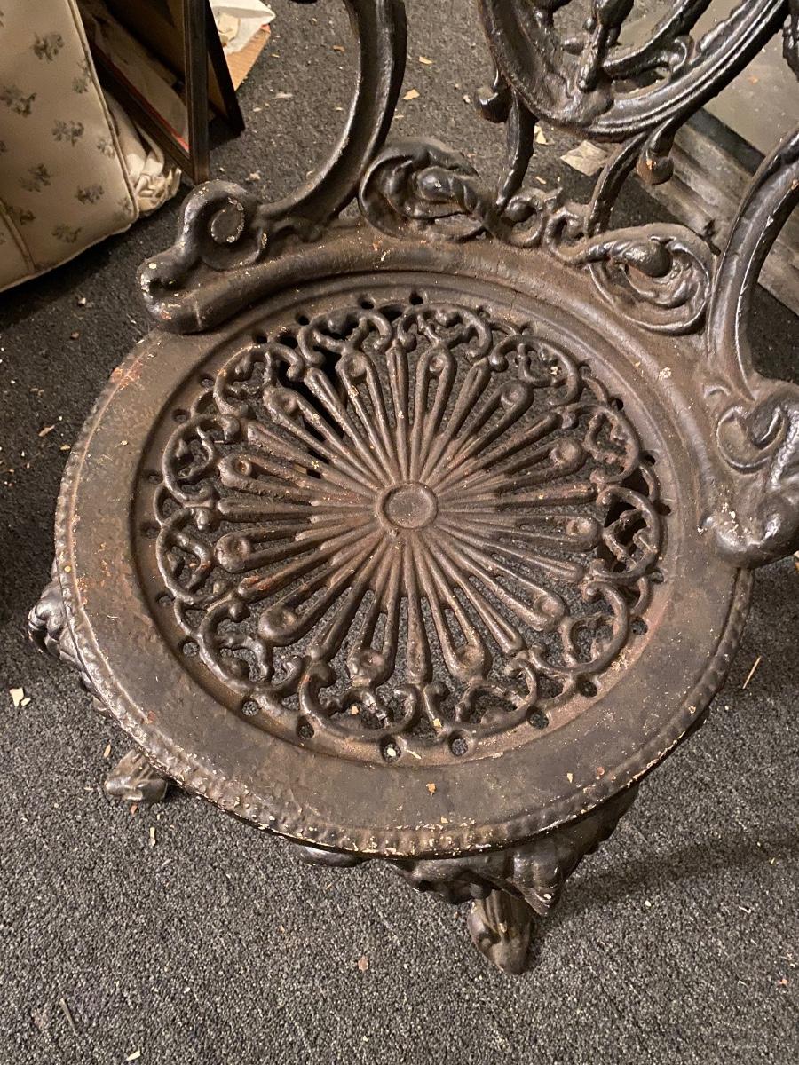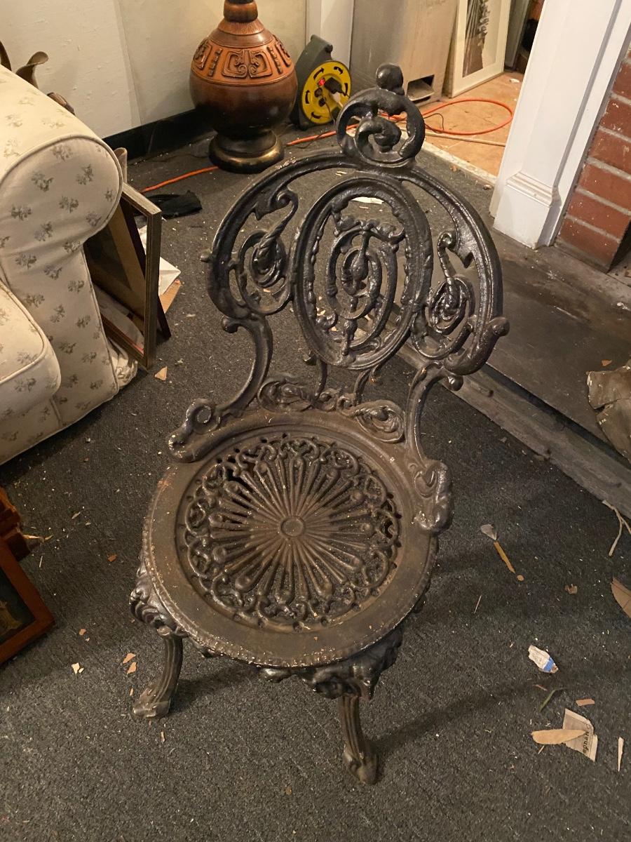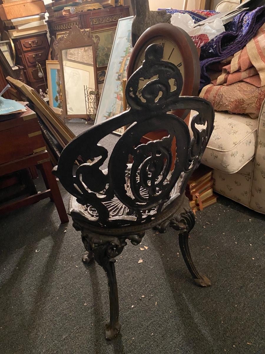 1920's cast iron chair, solid. No breaks in metal. 30" high.