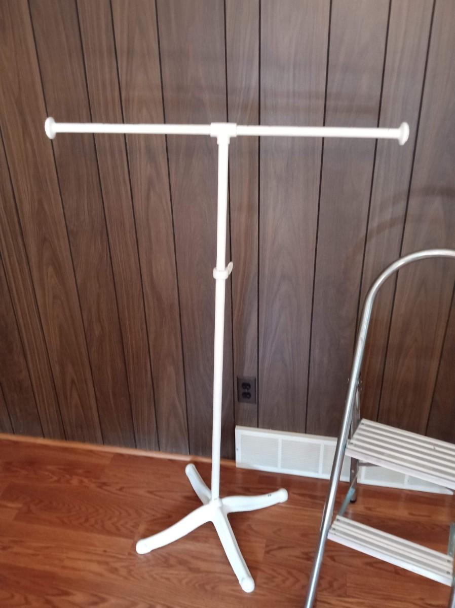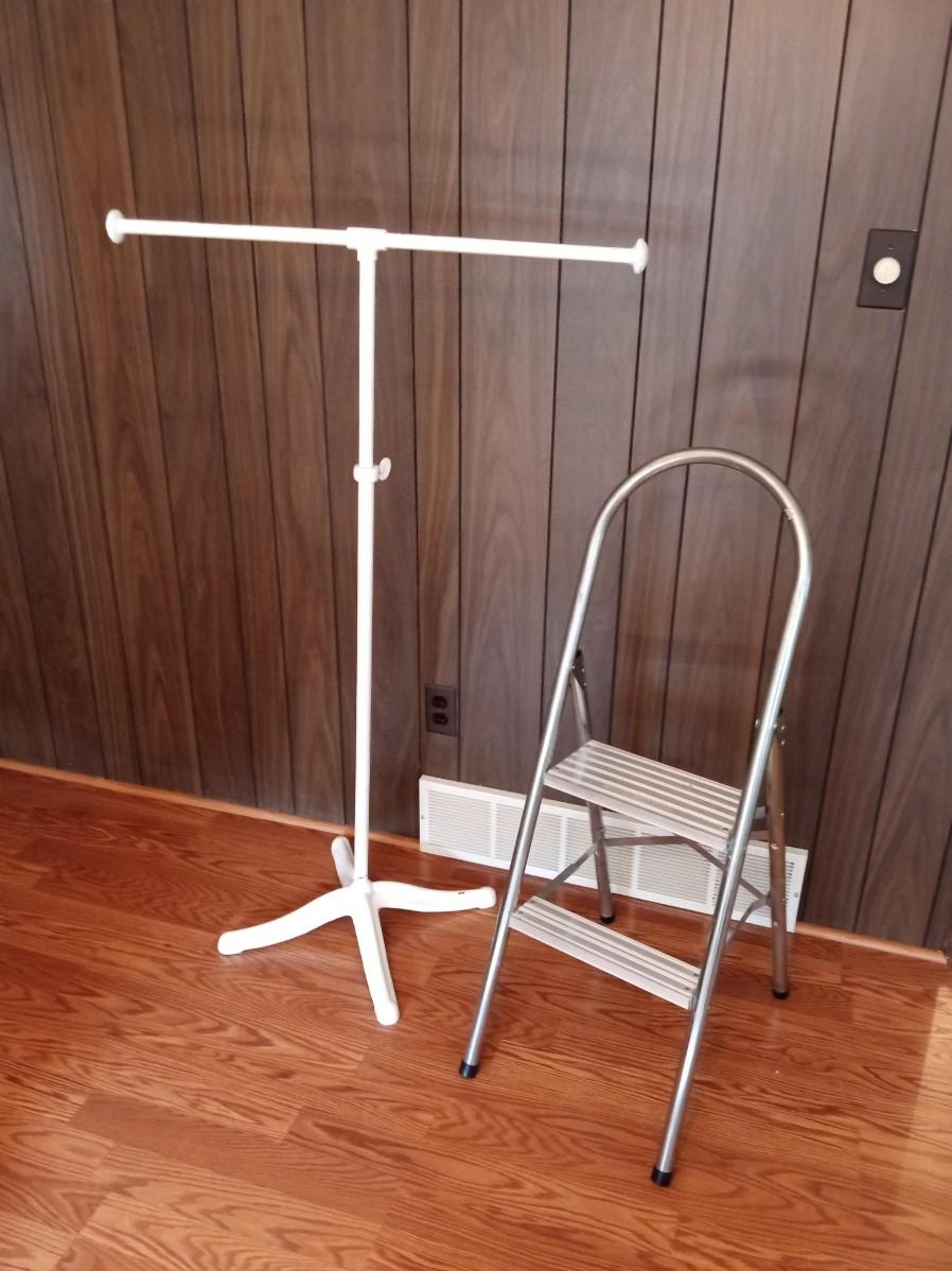 CAST IRON CLOTHES RACK AND A FOLDING STEP STOOL