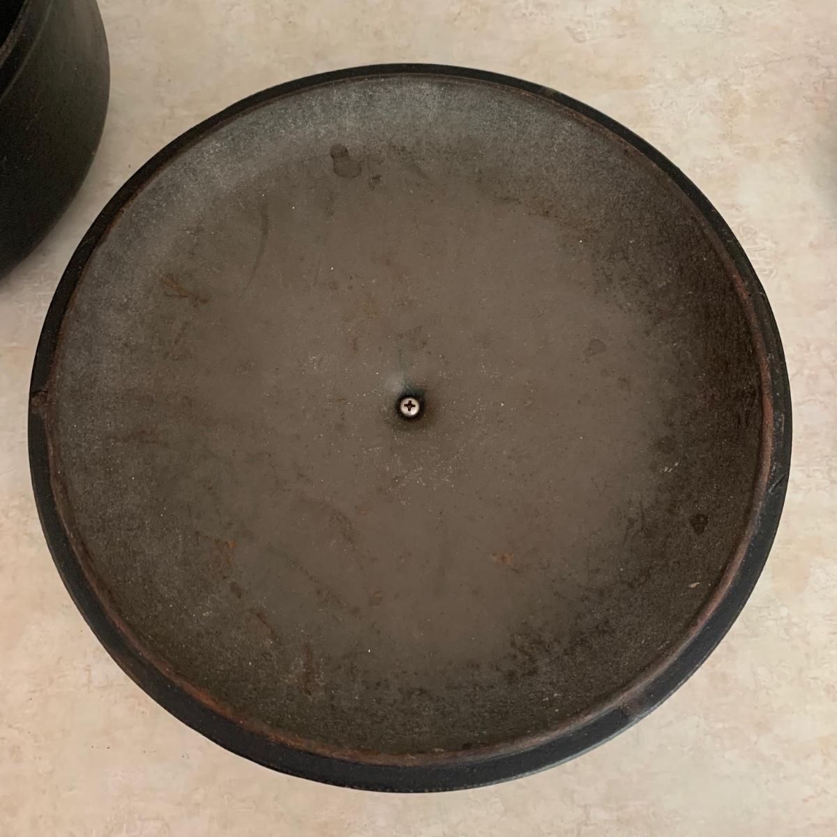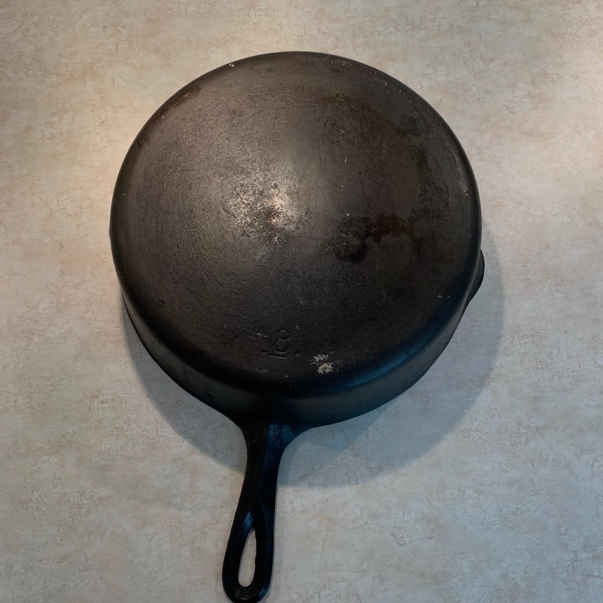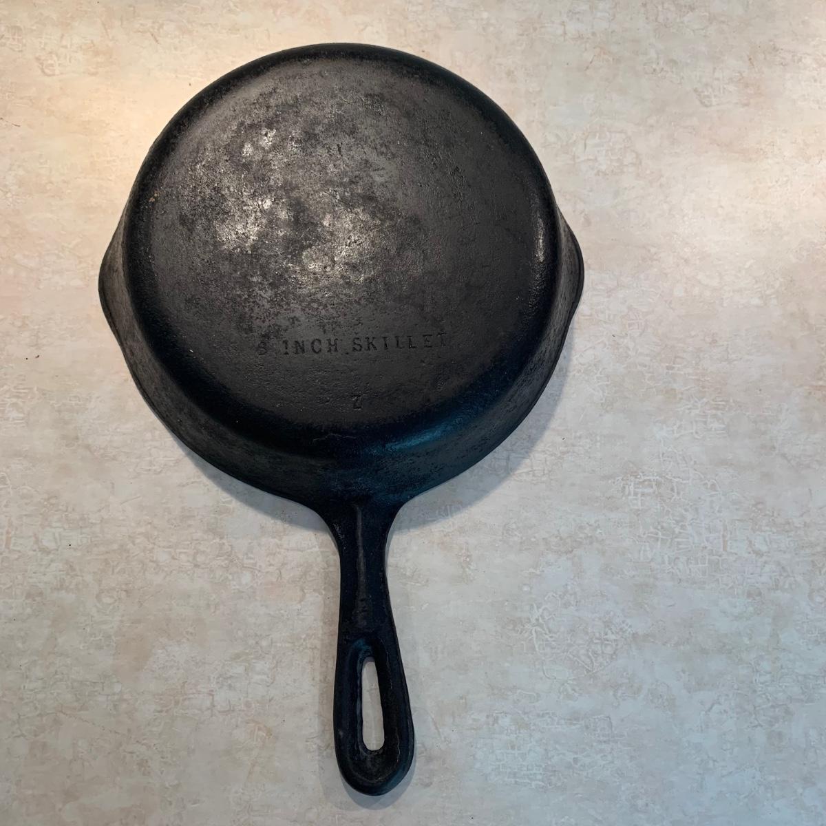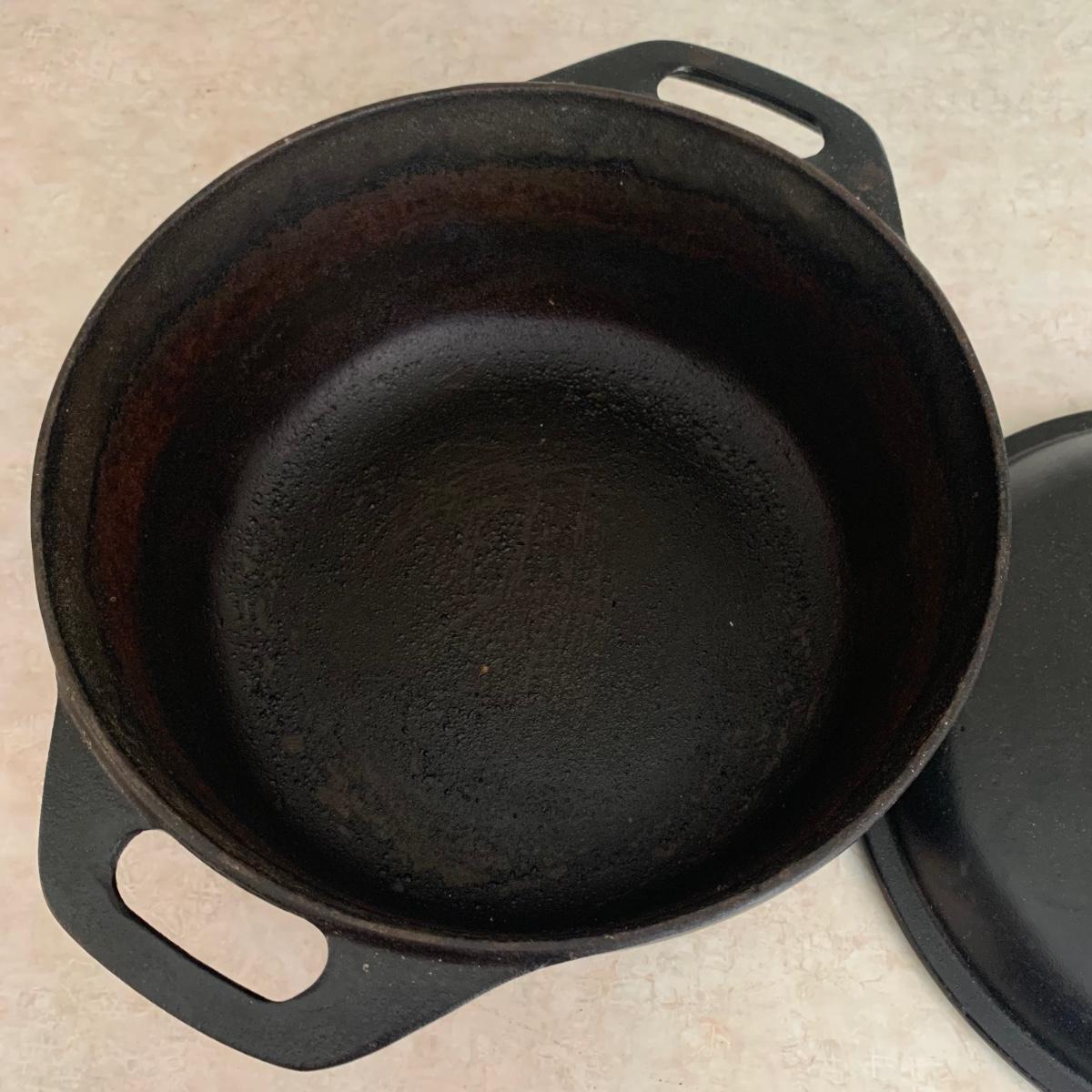 This lot contains a variety of cast iron pans. There is a lidded Chefmate brand pot with handles. It has a strong oil smell from previous use. This pot is 10”D. There is a unique S. R. and Co. “Wheat & Corn Stick Pan”. There are five frying pans, all different sizes. The largest is 10.75”D and the smallest is 3.75”D. Only the smallest pan has a legible makers mark. It reads “Haverty’s Charlotte, NC”. All items show some rust and wear. Shipping available, but be aware that items are quite heavy.