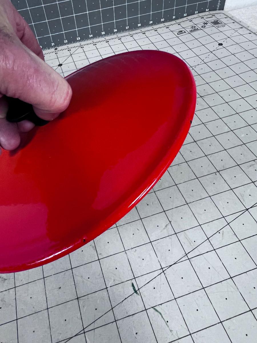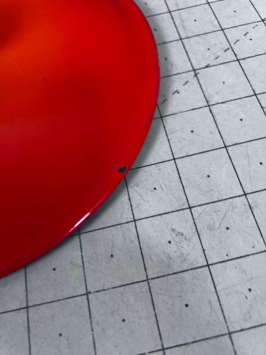 Couple of small chips around the rim. ORANGE 9-1/4" Diameter.