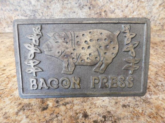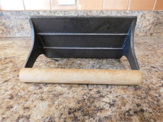 Cast Iron Decorative Bacon Press with Wooden Handle 7"