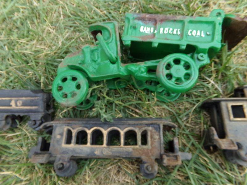 LOT 264  CAST IRON DUMP TRUCK & 4 PC TRAIN