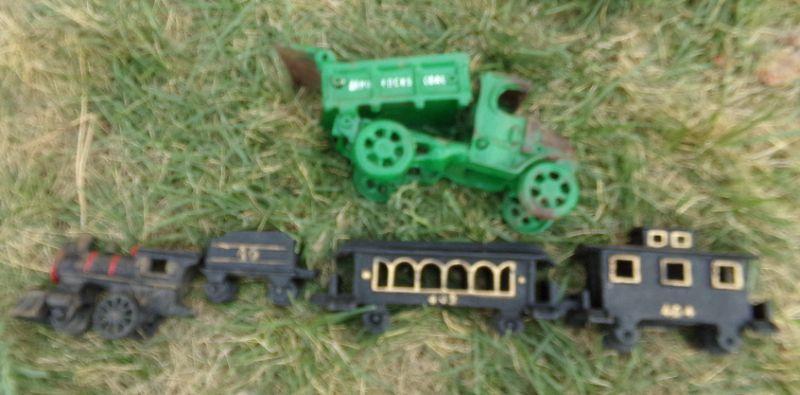 LOT 264 CAST IRON DUMP TRUCK & 4 PC TRAIN