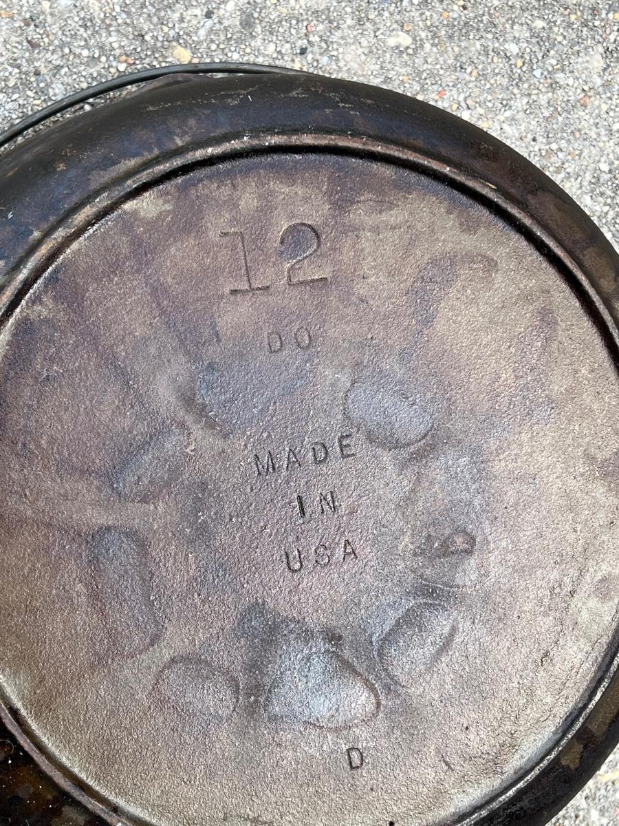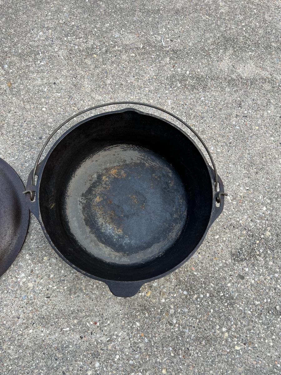 It holds 38 cups of water filling it to the brim of the pot ~ 5” H x 13” Round