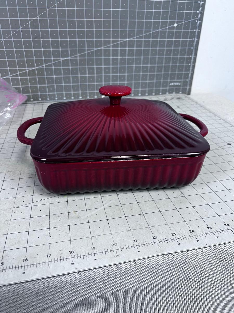 Cast Iron Enamel Baking Pan, NEW Burnt Red color