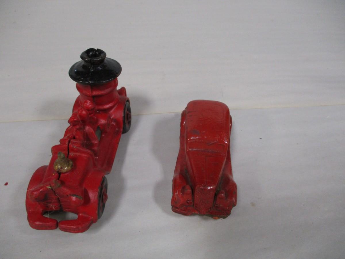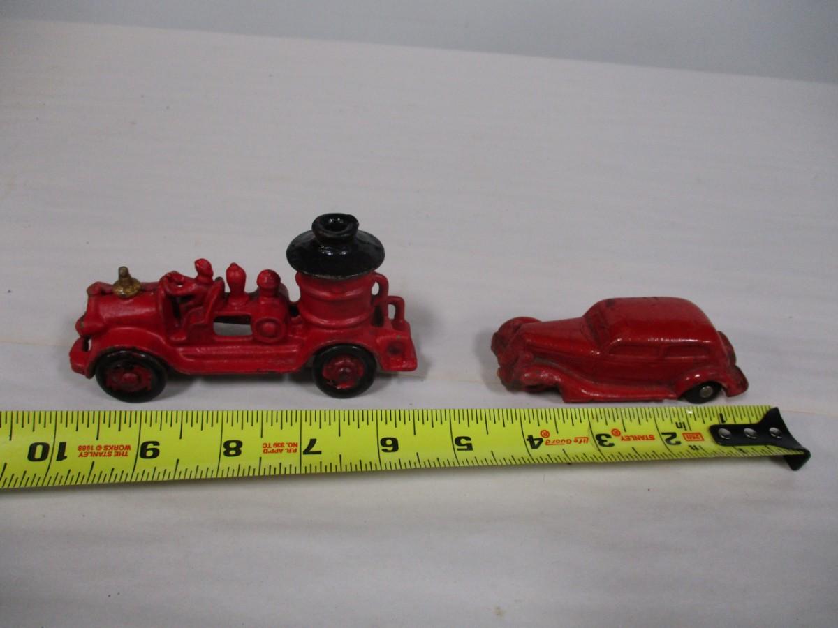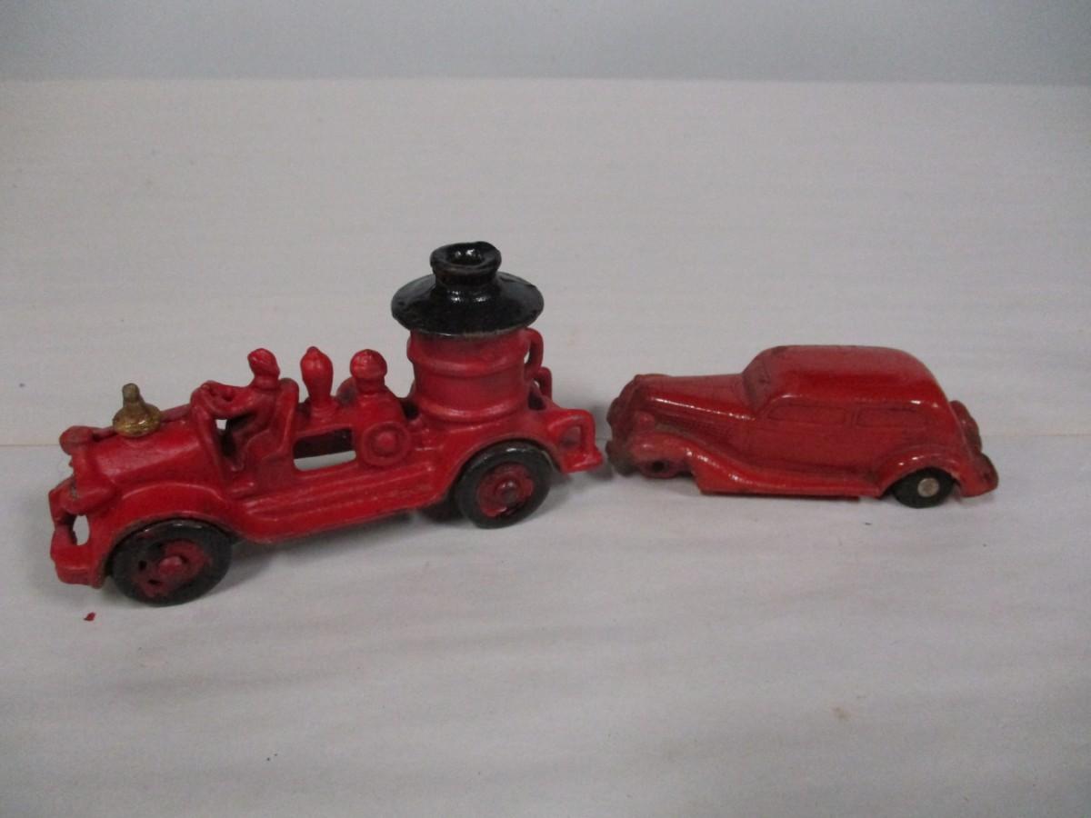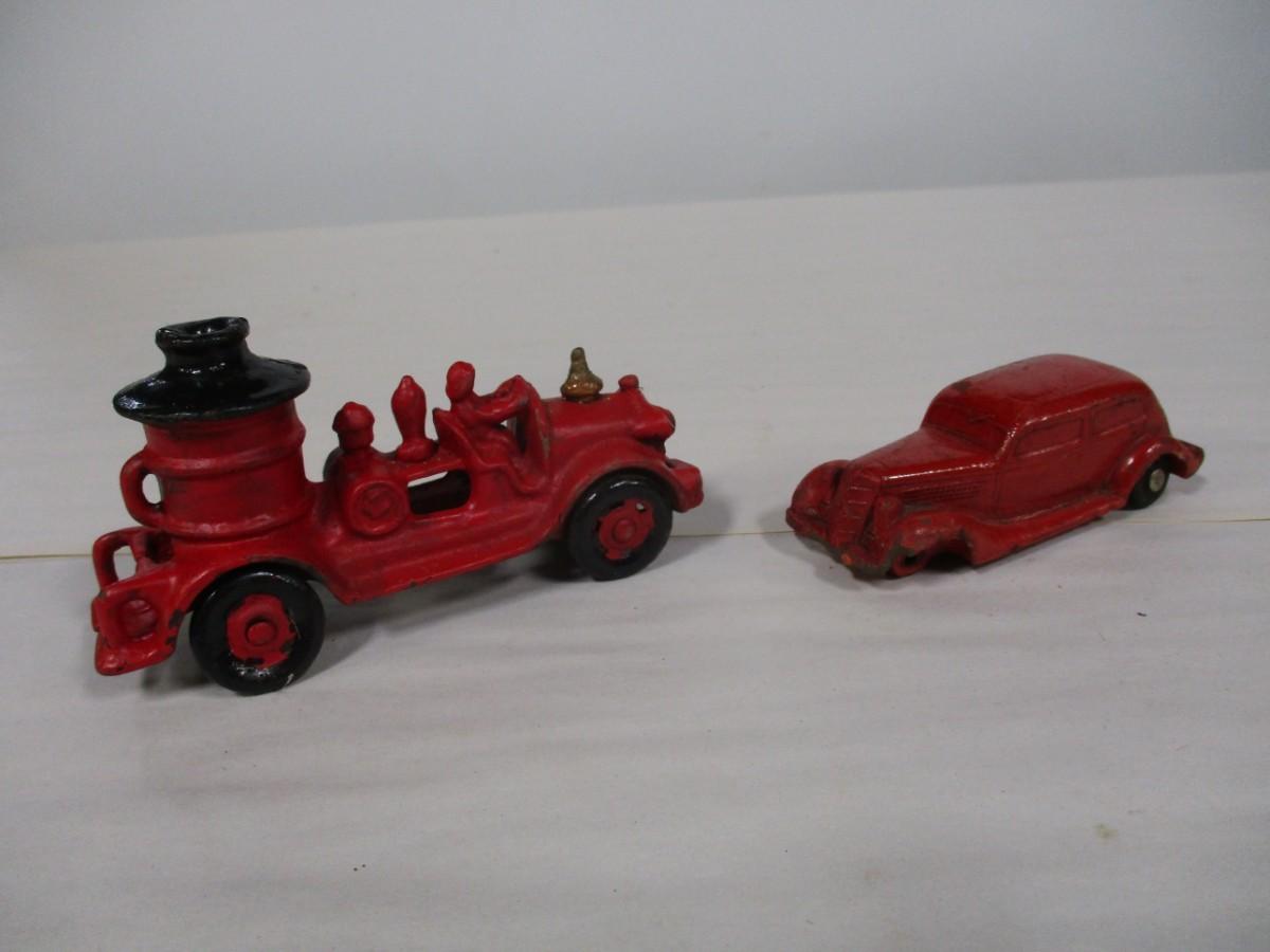 Vintage Cast Iron Fire Truck and 1930's Sedan