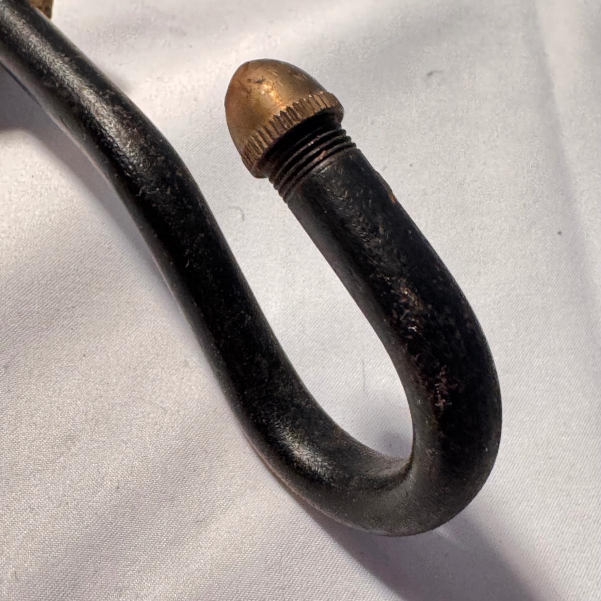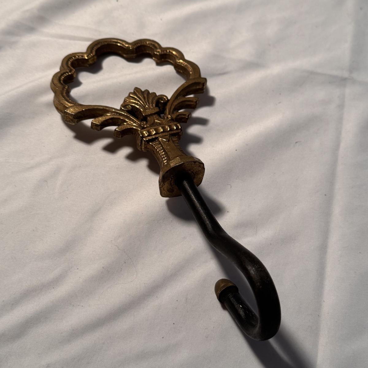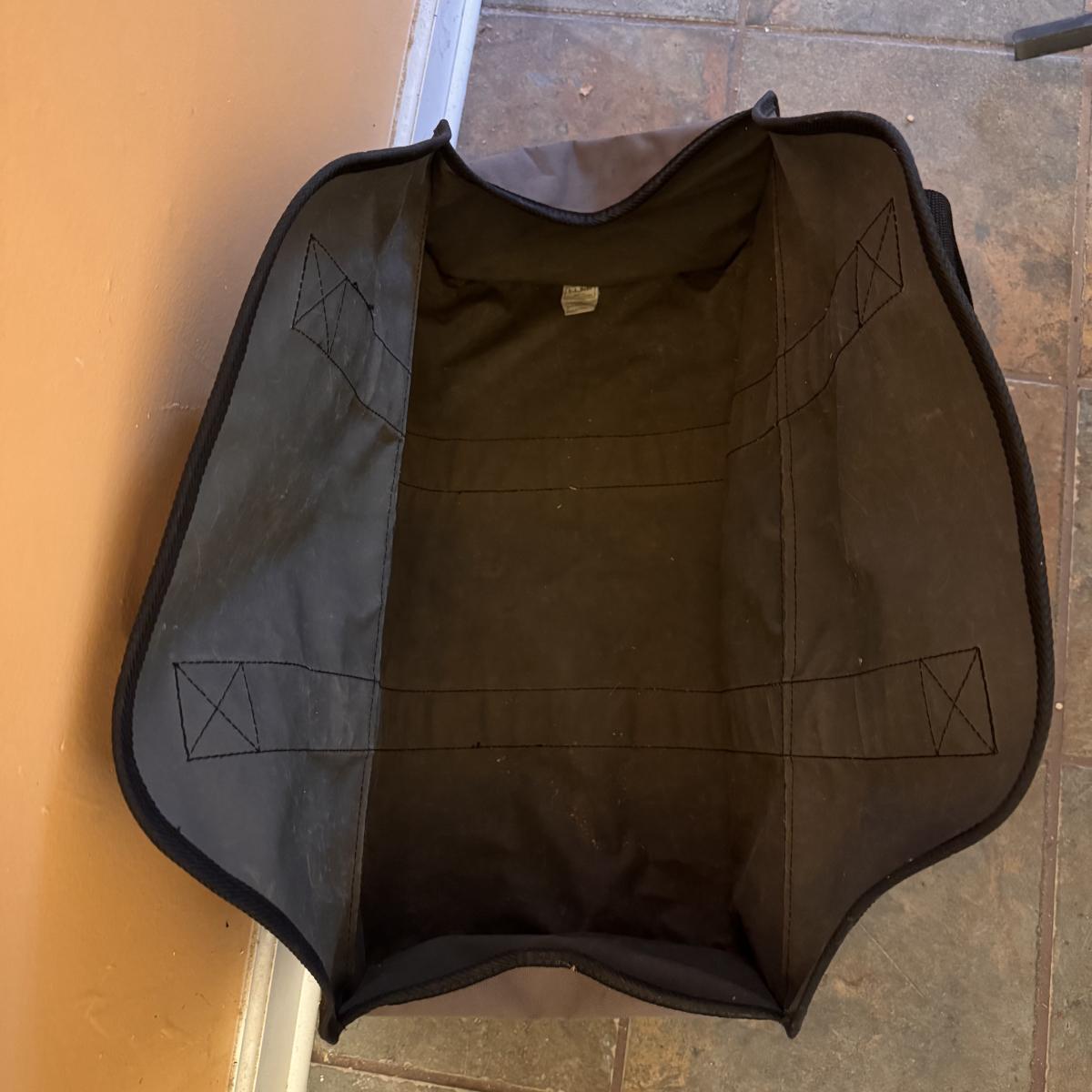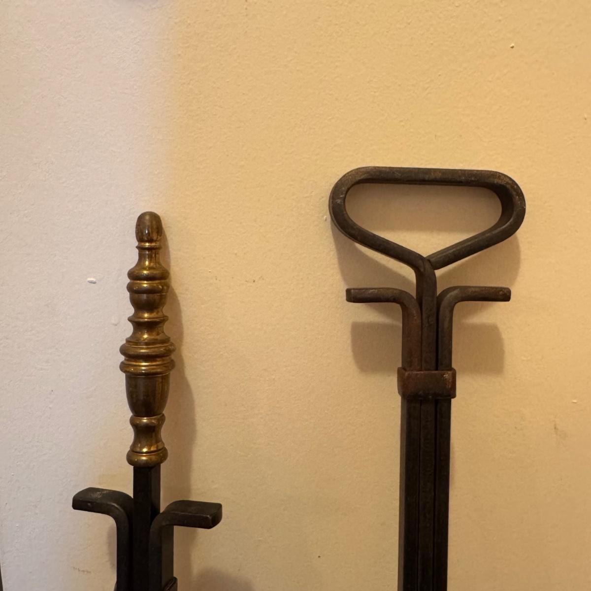 Lot includes one cast iron fireplace grate, along with two cast iron fireplace tongs, one fireplace damper pull, and one L.L. bean firewood storage bag. The fireplace grate measures 28.5” x 14” x 6”H. Local pickup only.