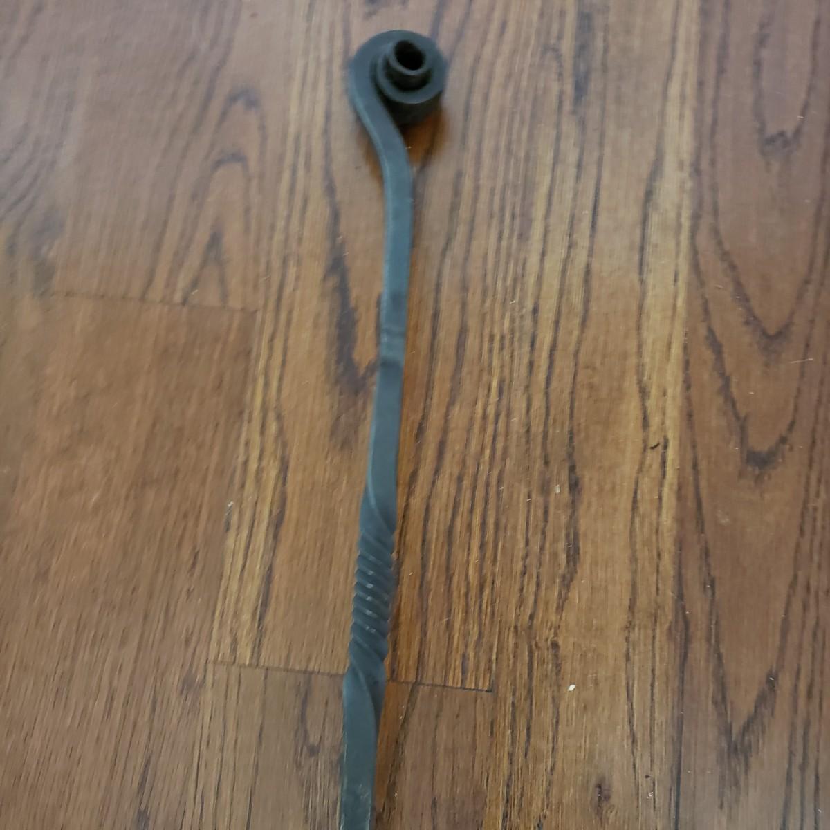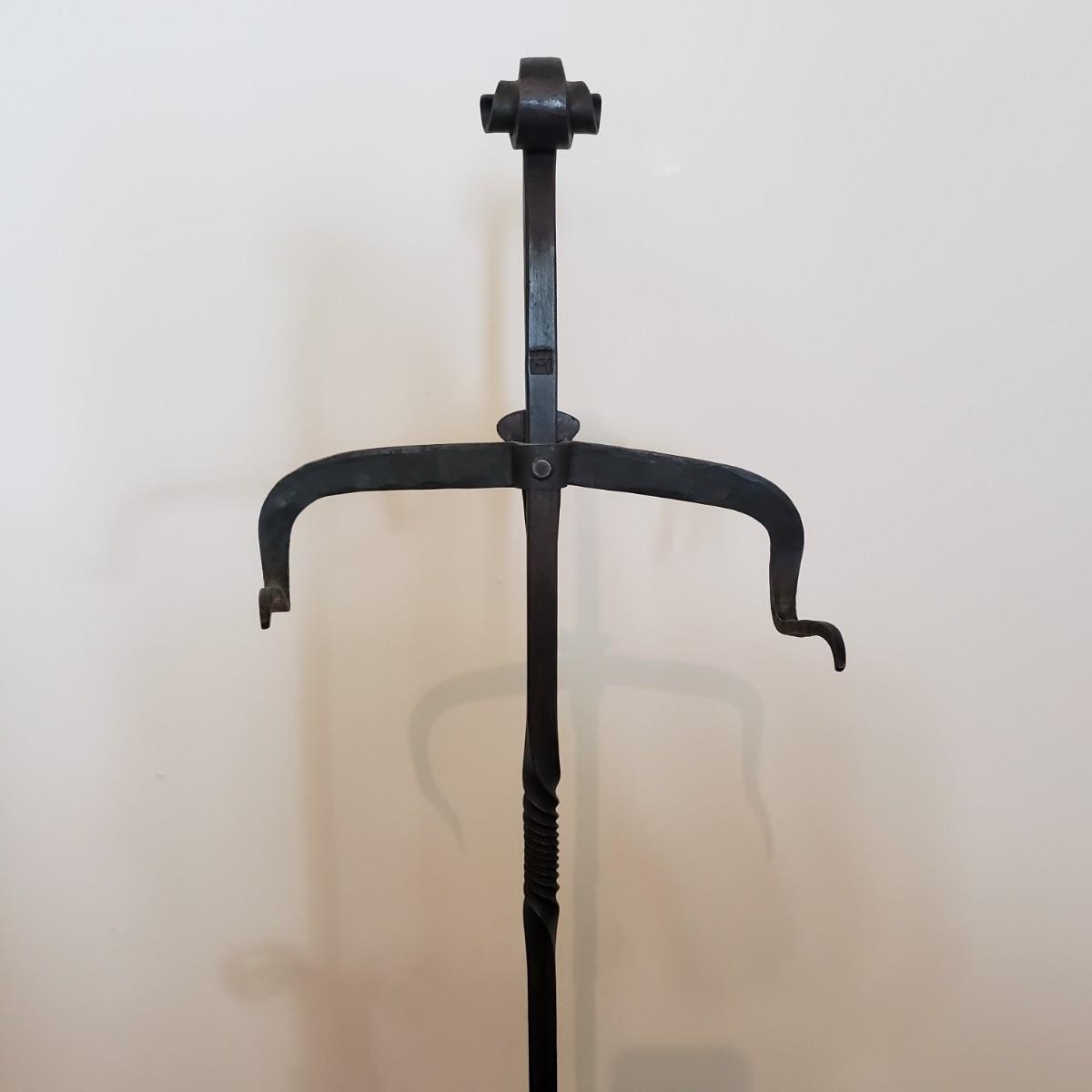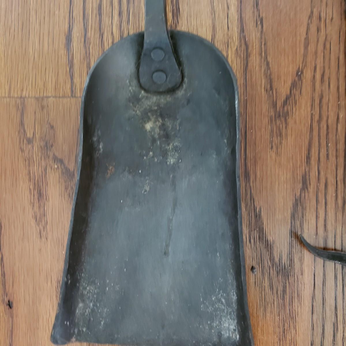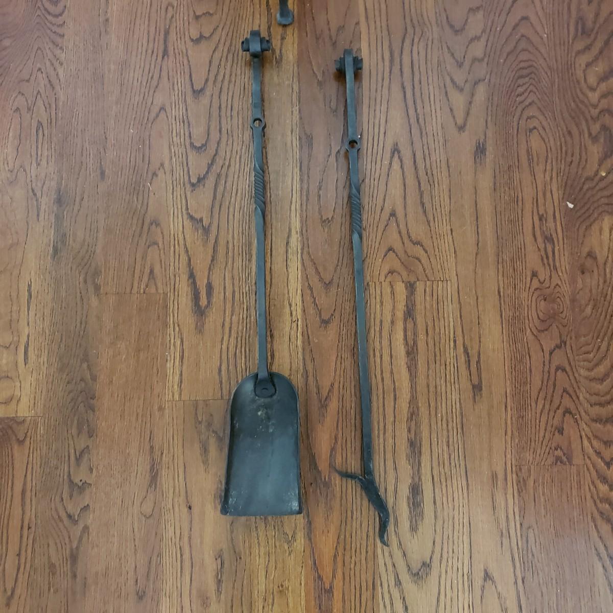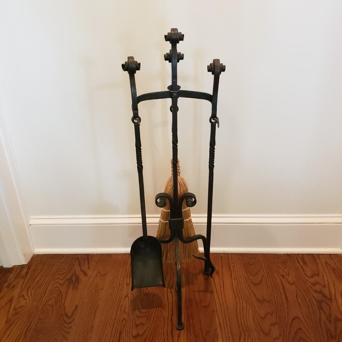 This detailed, heavy cast iron fireplace set comes with a shovel, poker and broom. Each piece is stamped, see last picture. The mount measures 9" x 8" x 36"H.