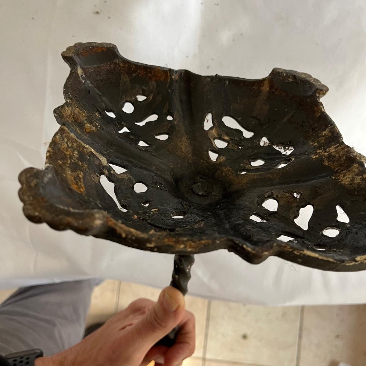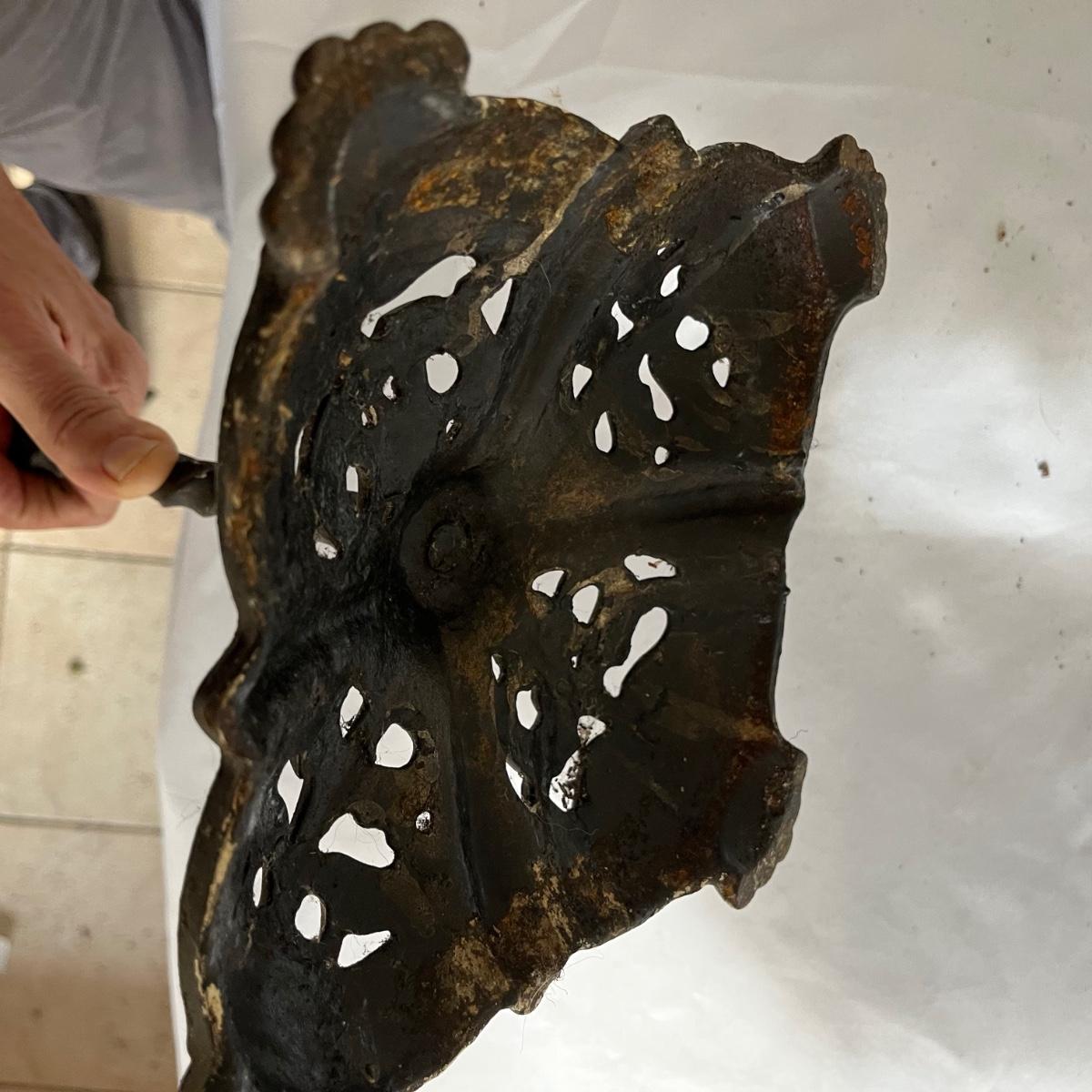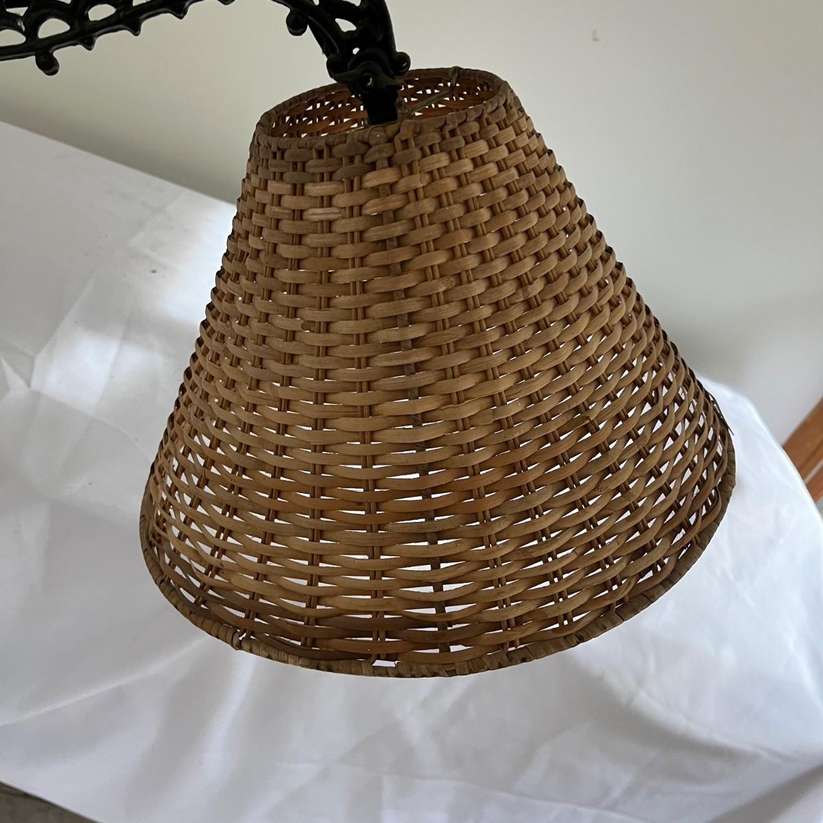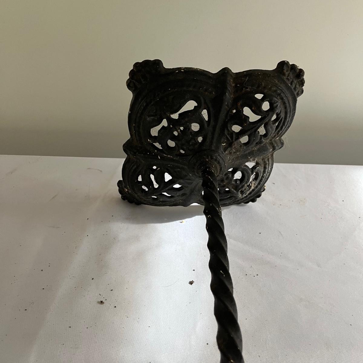 This cast iron floor lamp worked when tested and measures 55” tall with a 7.5” x 7.5” base.