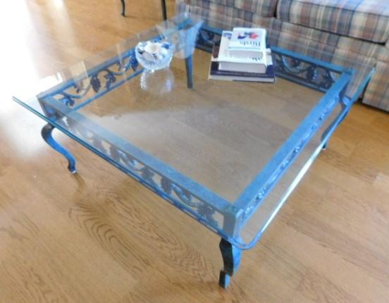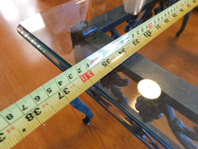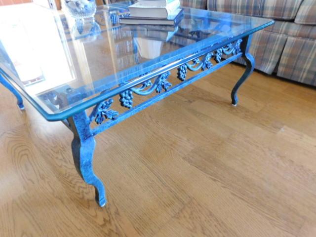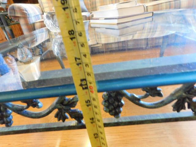 Cast Iron Frame Verdigris Glass Top Coffee Table  36" x 16"