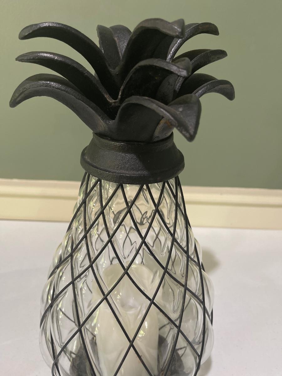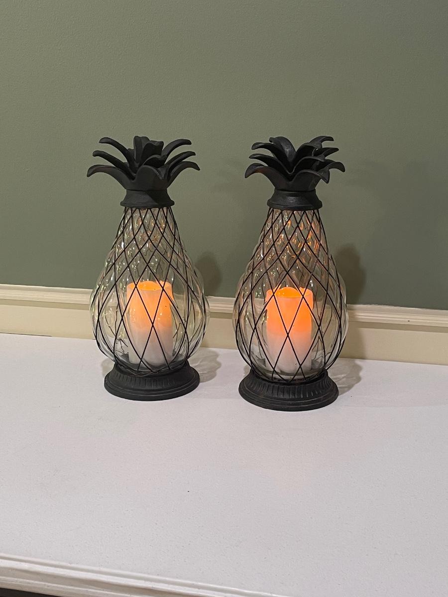 Pair (2) ~ Cast Iron & Glass Pineapple Lighted Lanterns