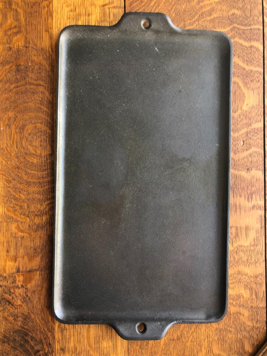This cast iron piece is in excellent condition, and signed on the bottom.
