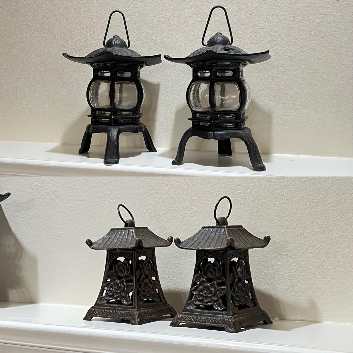 See Photos for measurements. All in Great Condition. Insert Tea Lites from the Bottom