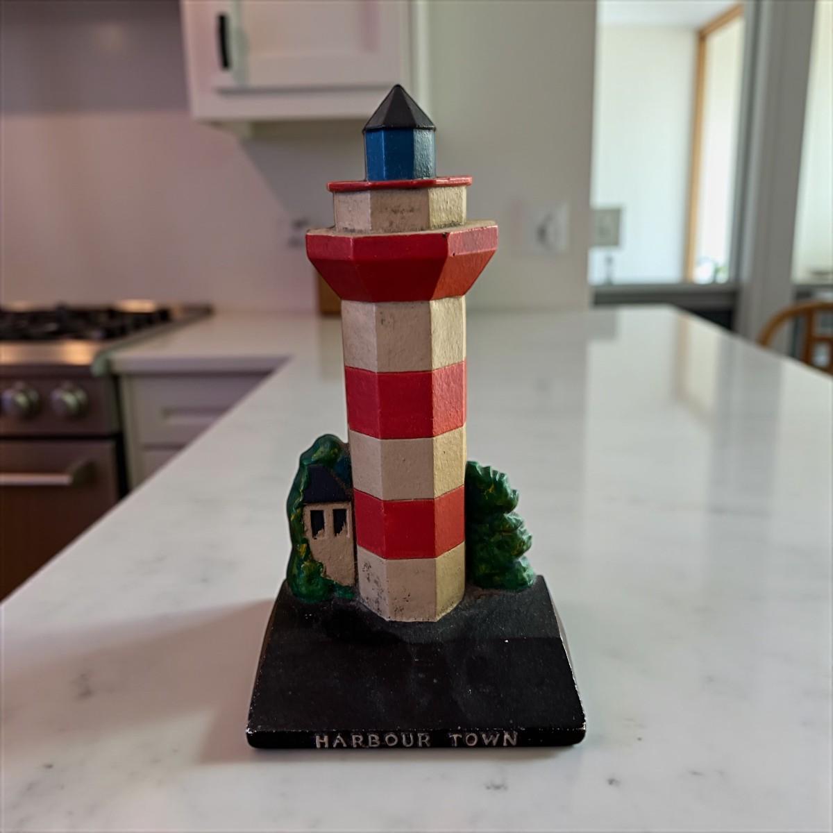 Cast Iron Harbour Town Lighthouse Door Stop Approcimately 10" Tall Heavy