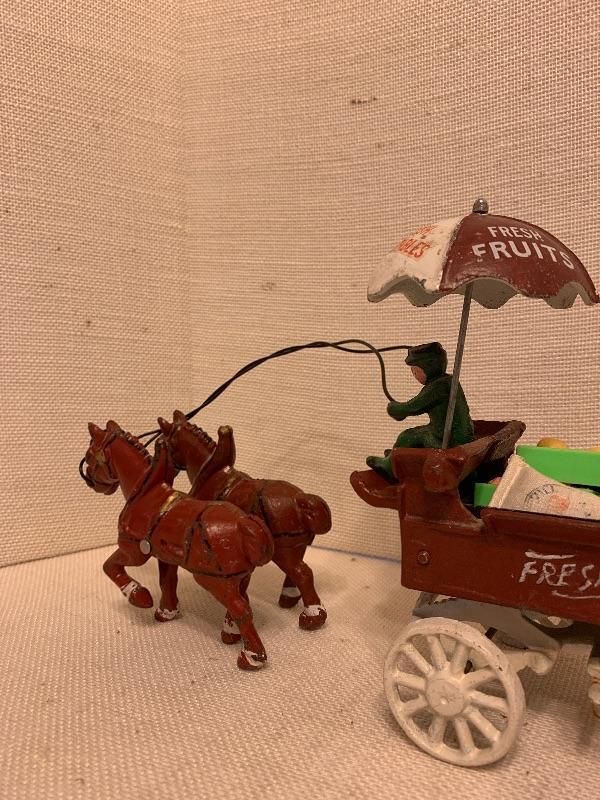 Cast Iron  Horse and Wagon with Fruits and Vegetables