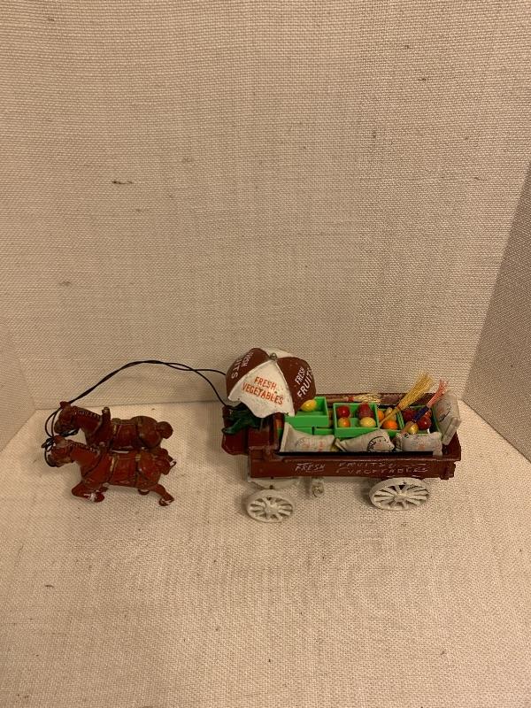 Cast Iron Horse and Wagon with Fruits and Vegetables