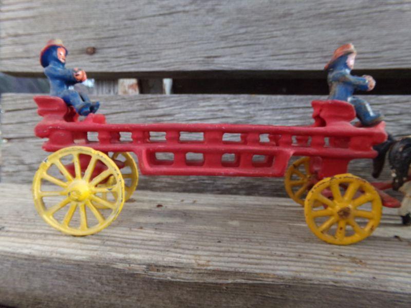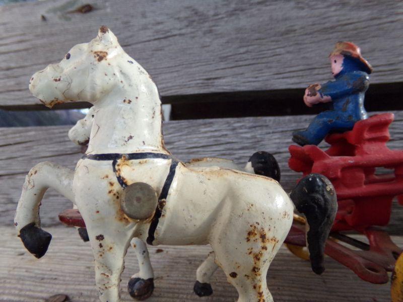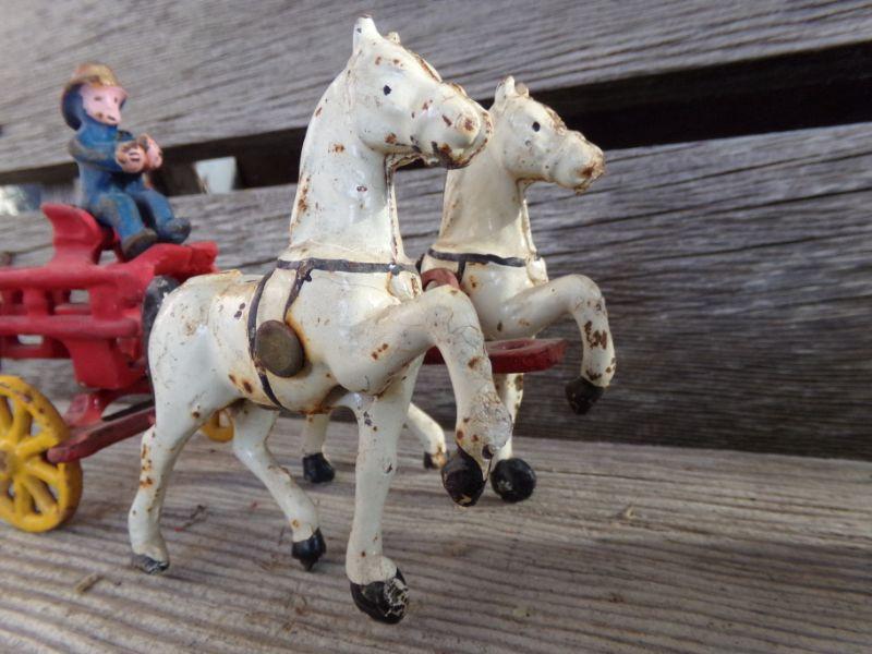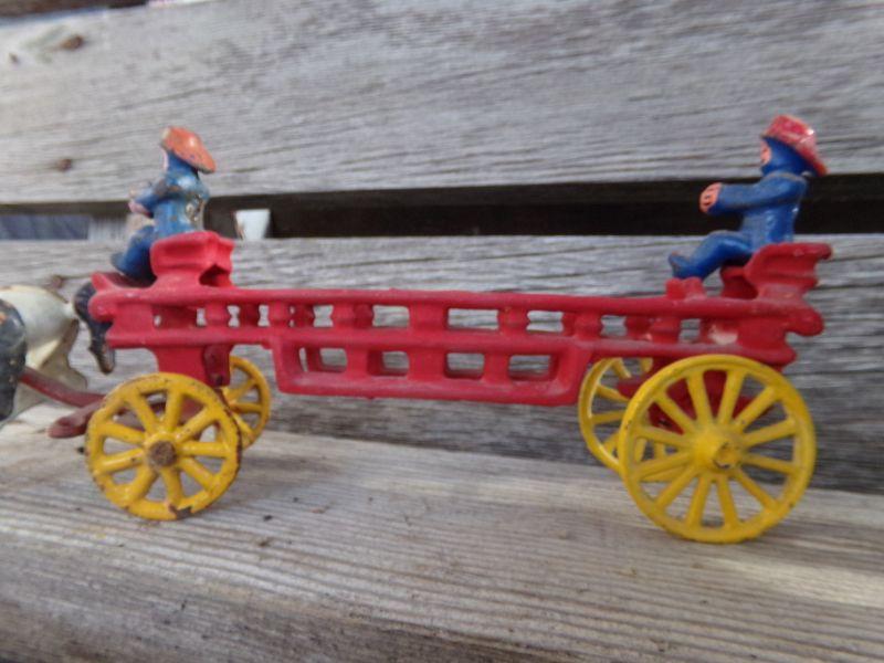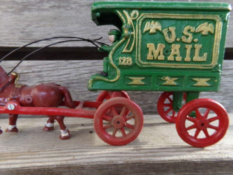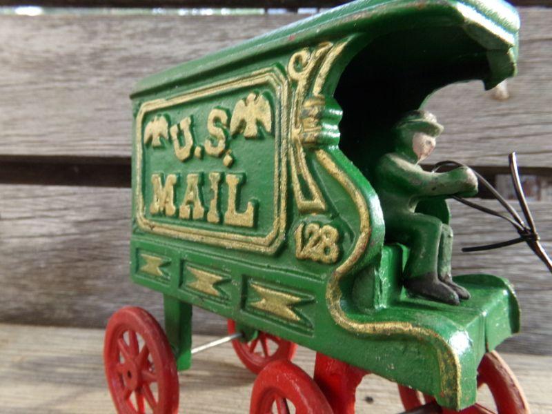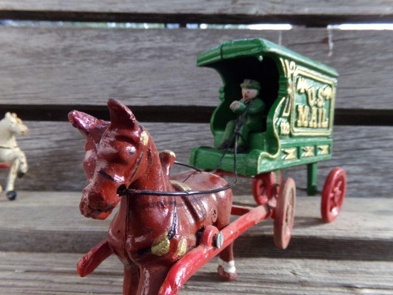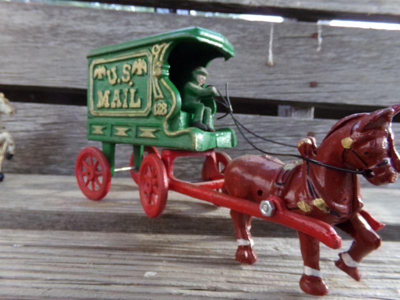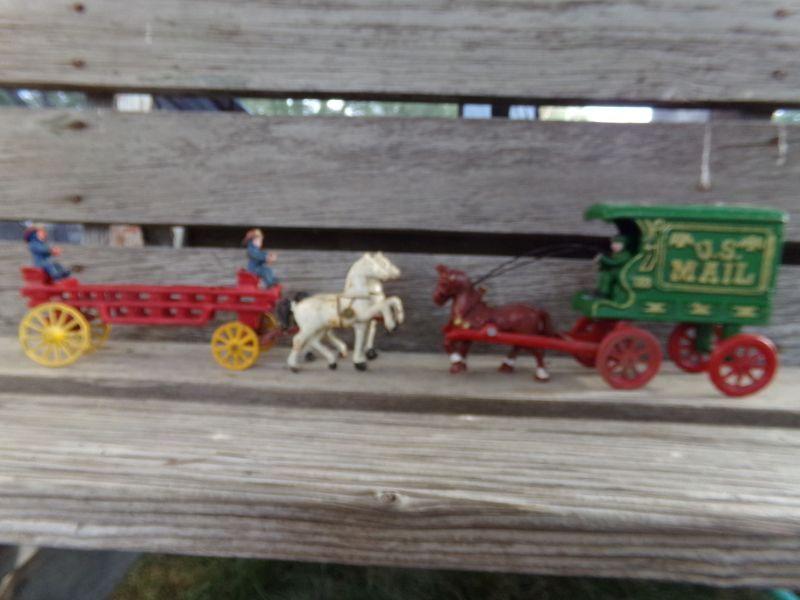 LOT 263 CAST IRON HORSE DRAWN FIRETRUCK AND US MAIL WAGON