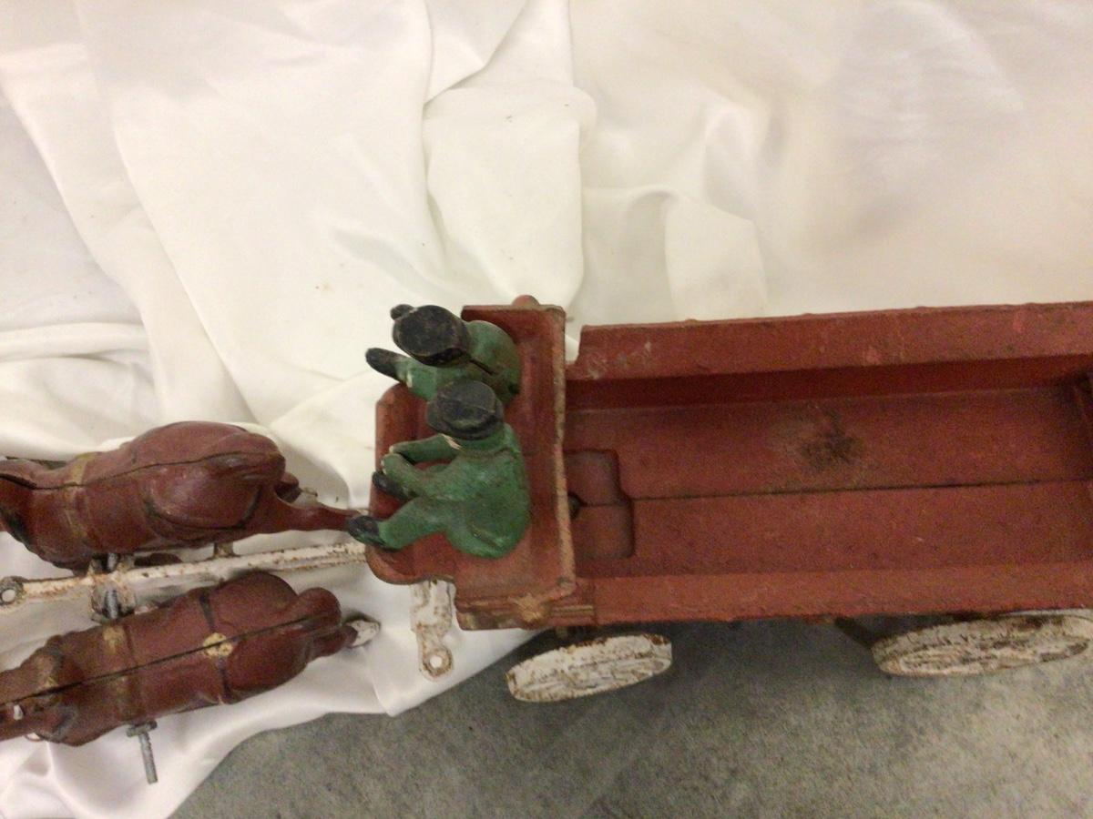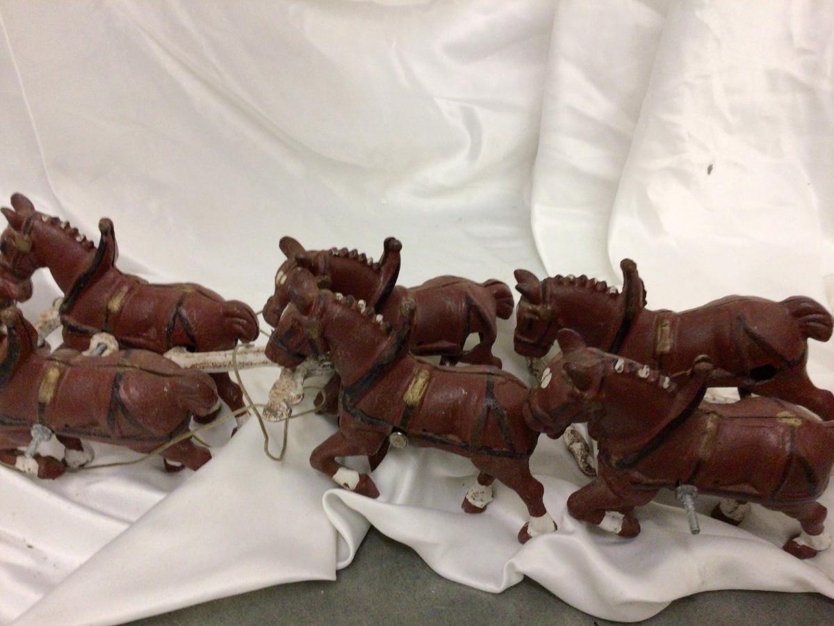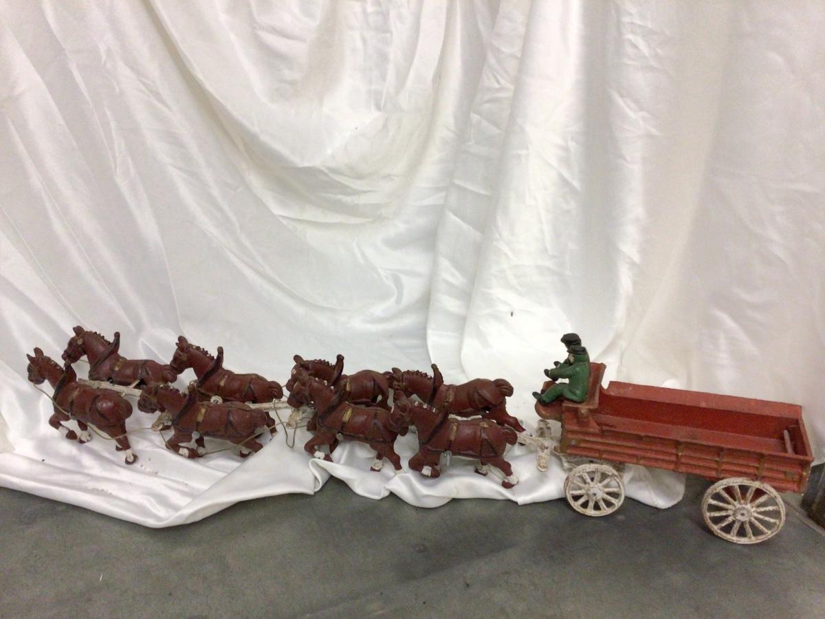 You get 8 cast iron horses, cast iron wagon, and two cast iron guys that sit on the Wagon.