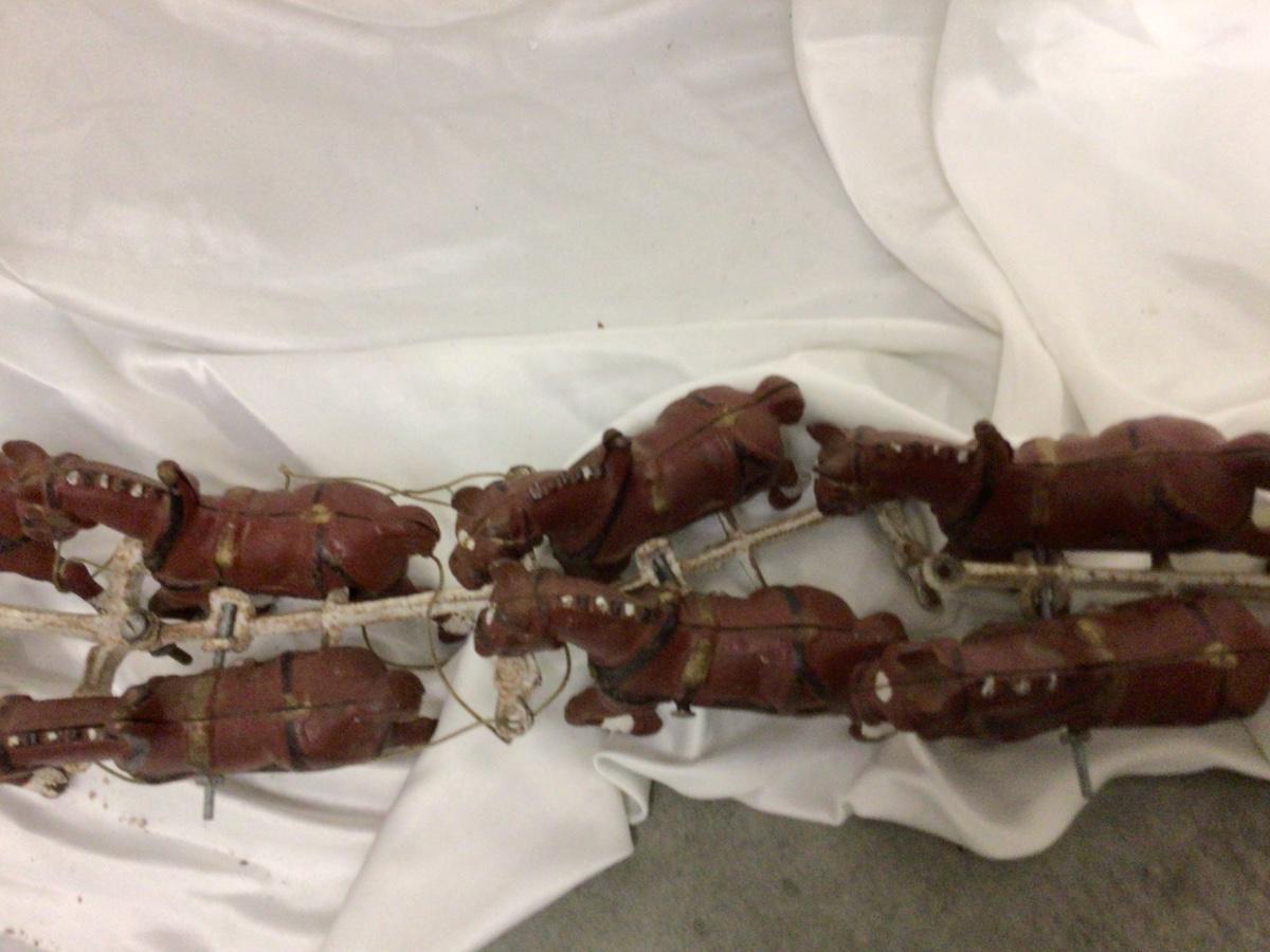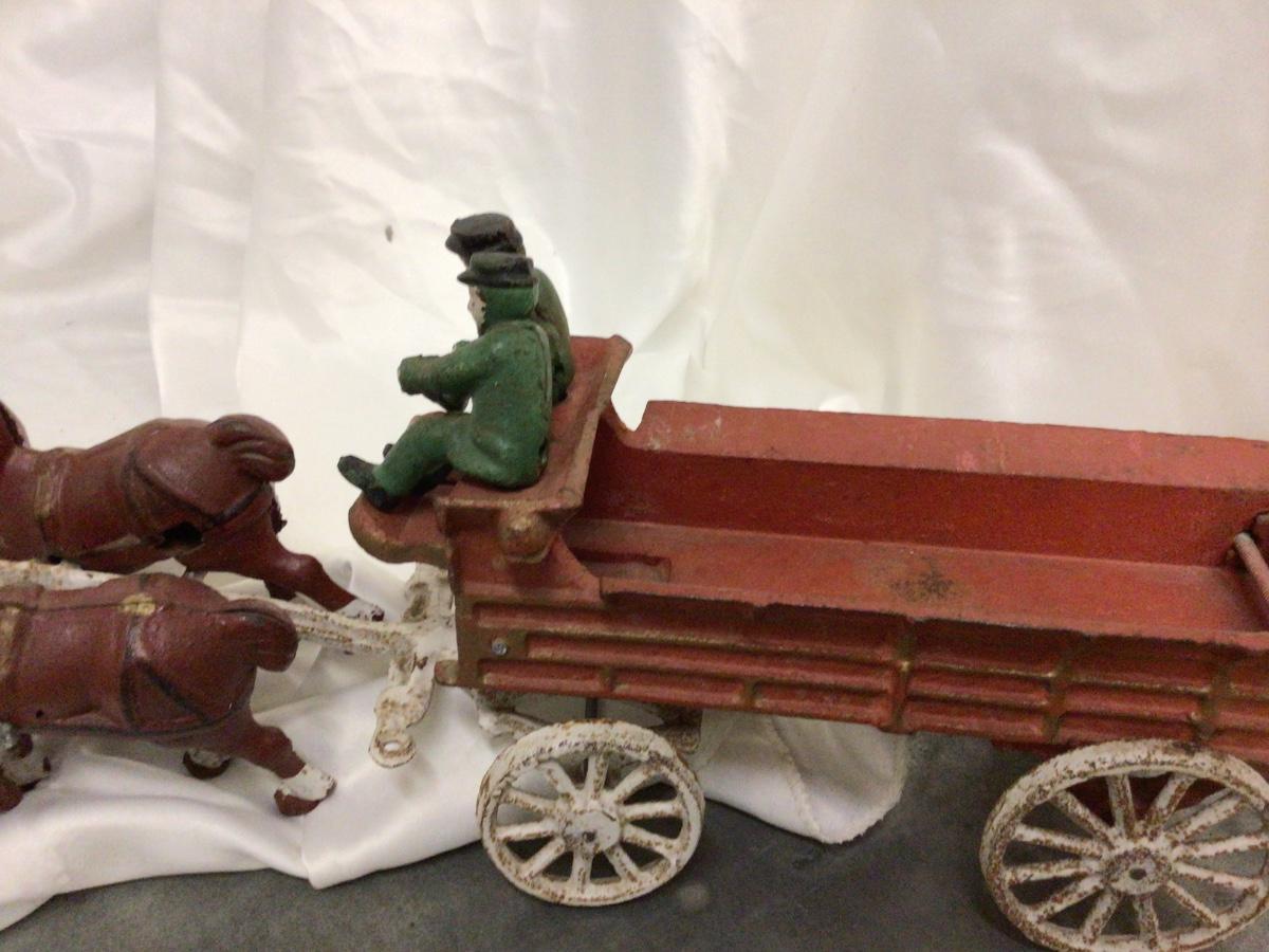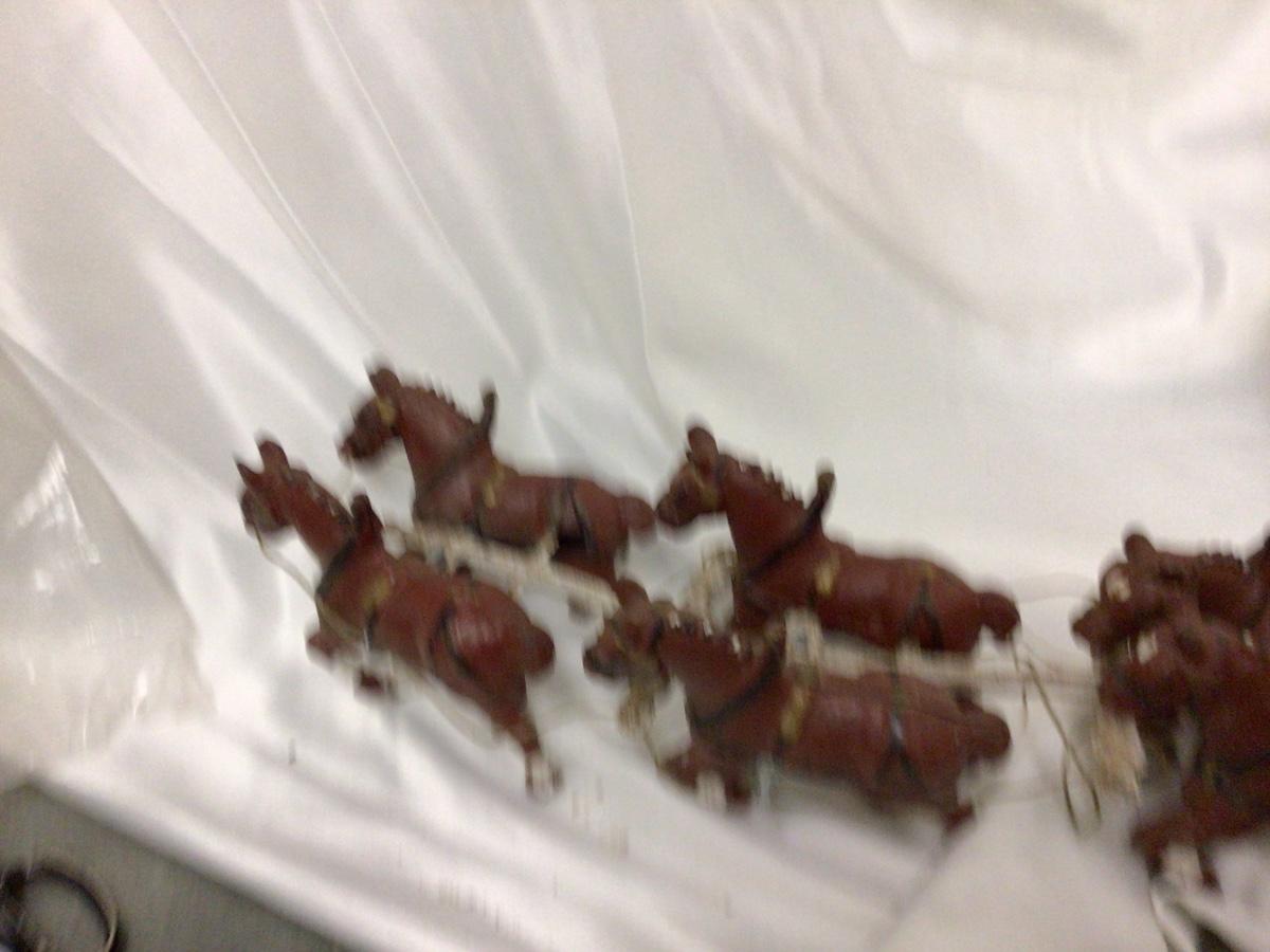 You get 8 cast iron horses, cast iron wagon, and two cast iron guys that sit on the Wagon.
